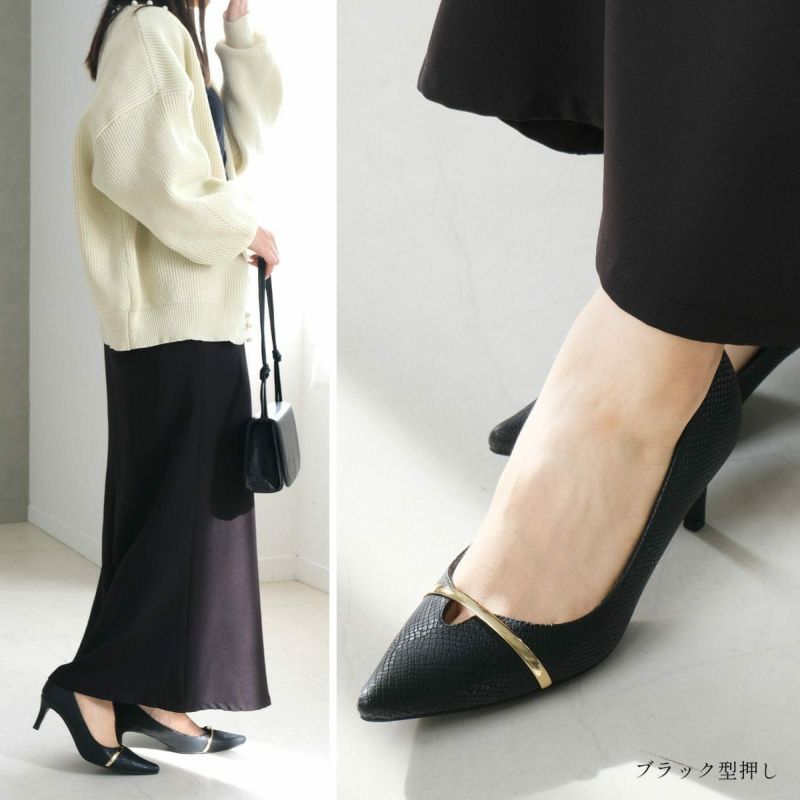 【2足以上で10%OFF対象】メタルラインポインテッドトゥパンプス