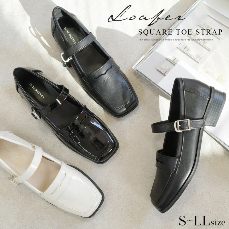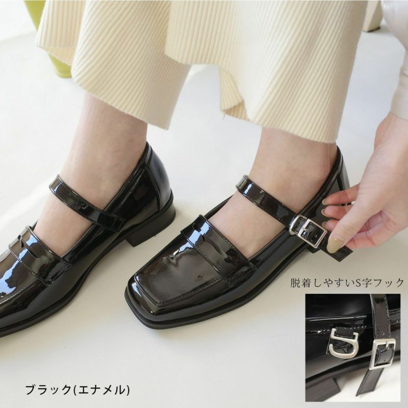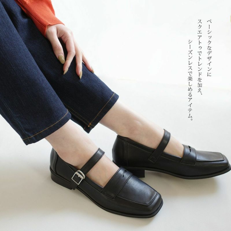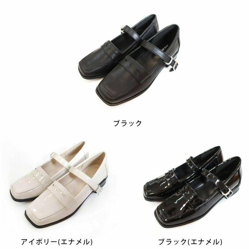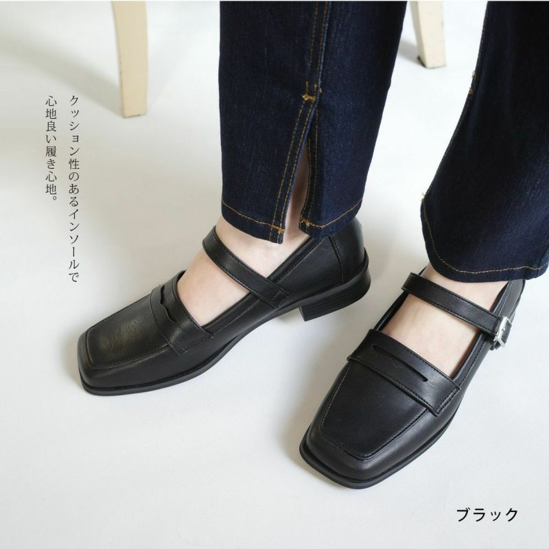 【在庫限り!特別価格!】スクエアトゥストラップローファーパンプス レディース