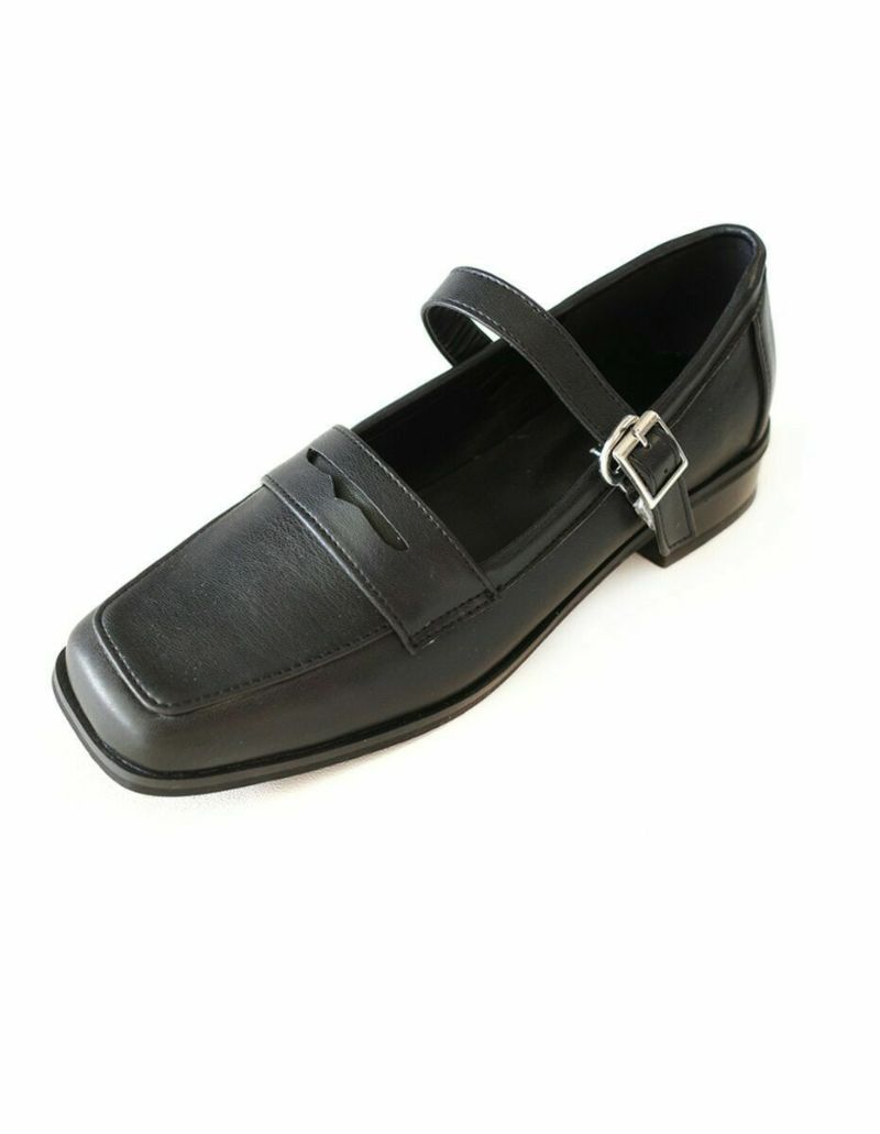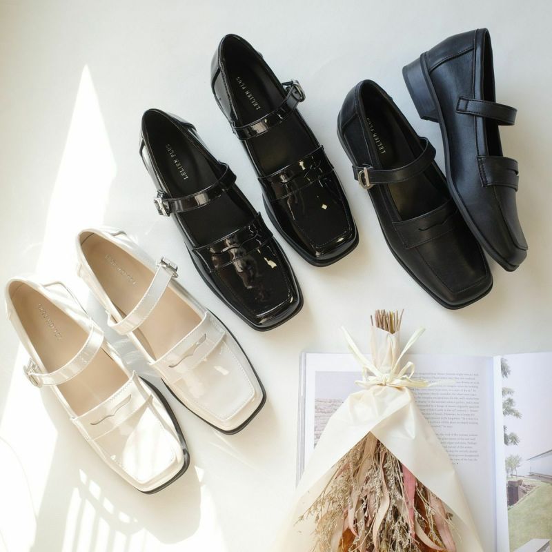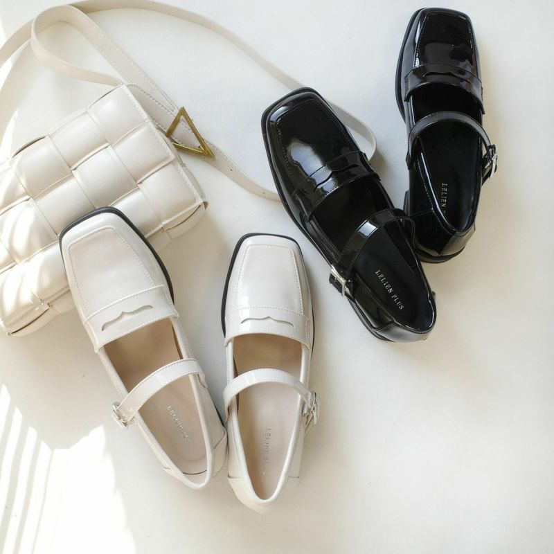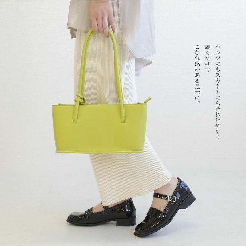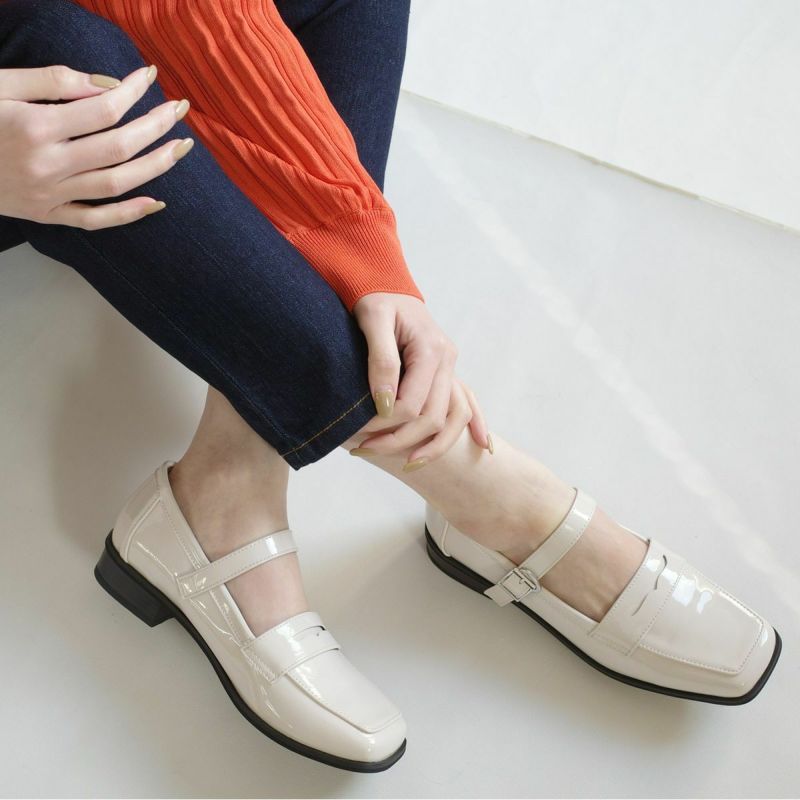 【在庫限り!特別価格!】スクエアトゥストラップローファーパンプス レディース