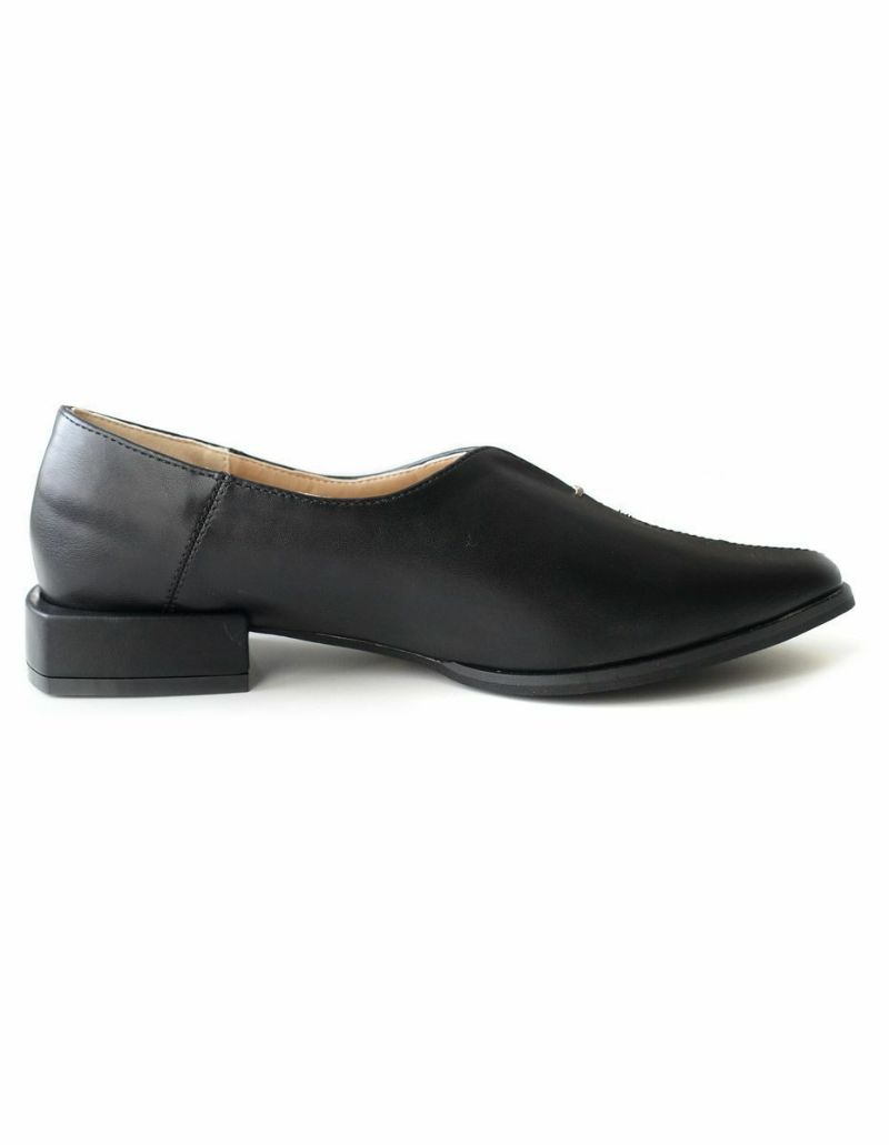 柔らか素材で足馴染み良く安定感抜群の変形ヒールがモードな一足