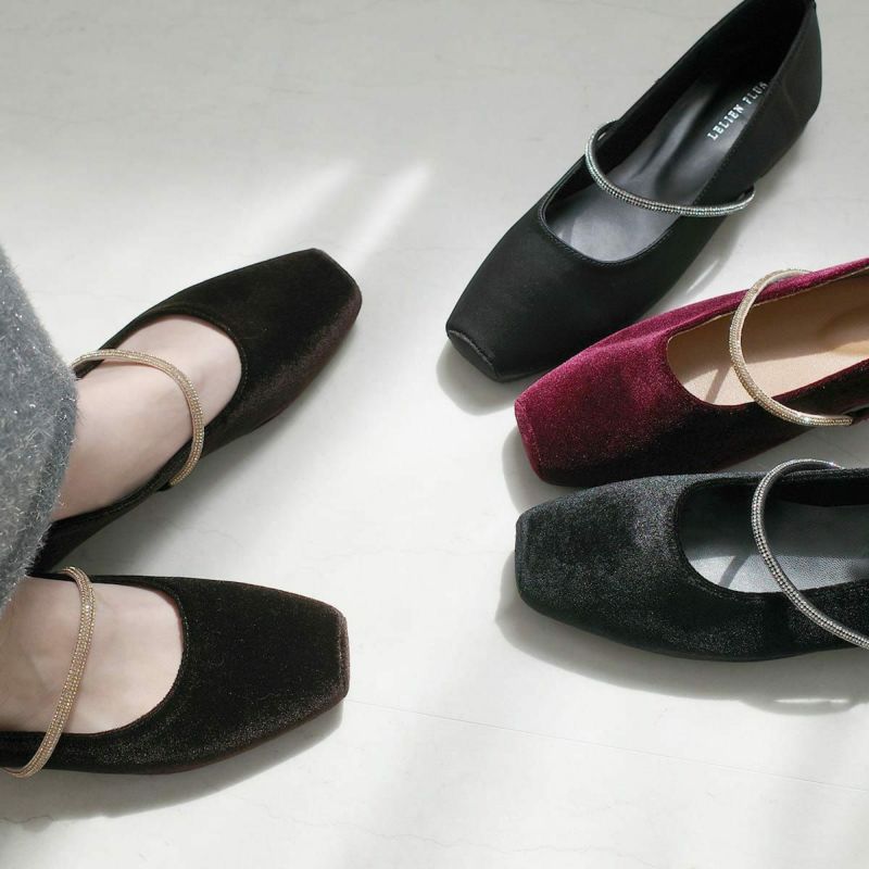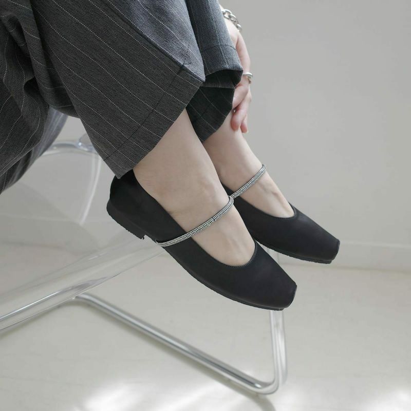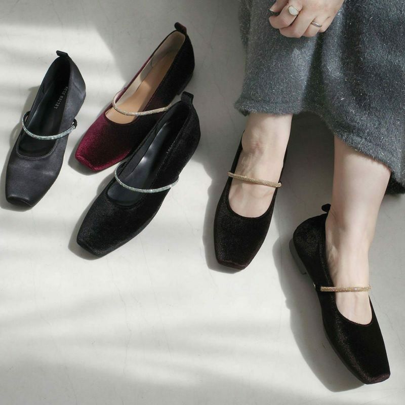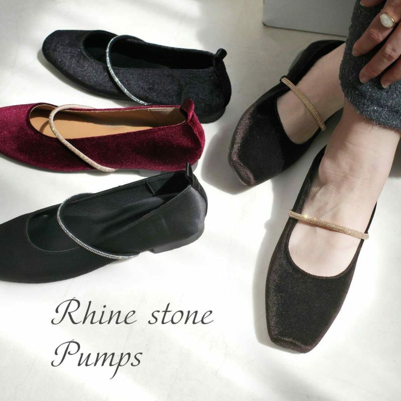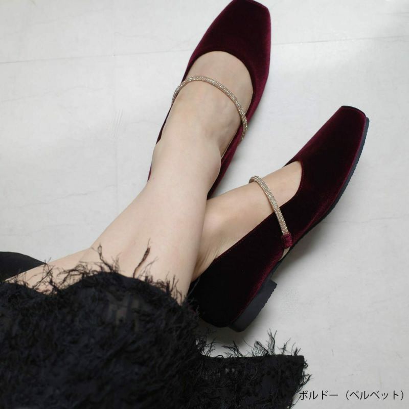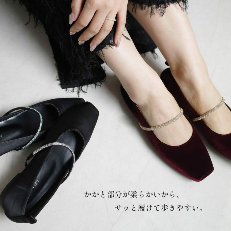 【期間限定SALE】ラインストーンパンプスローヒールバブーシュ レディース