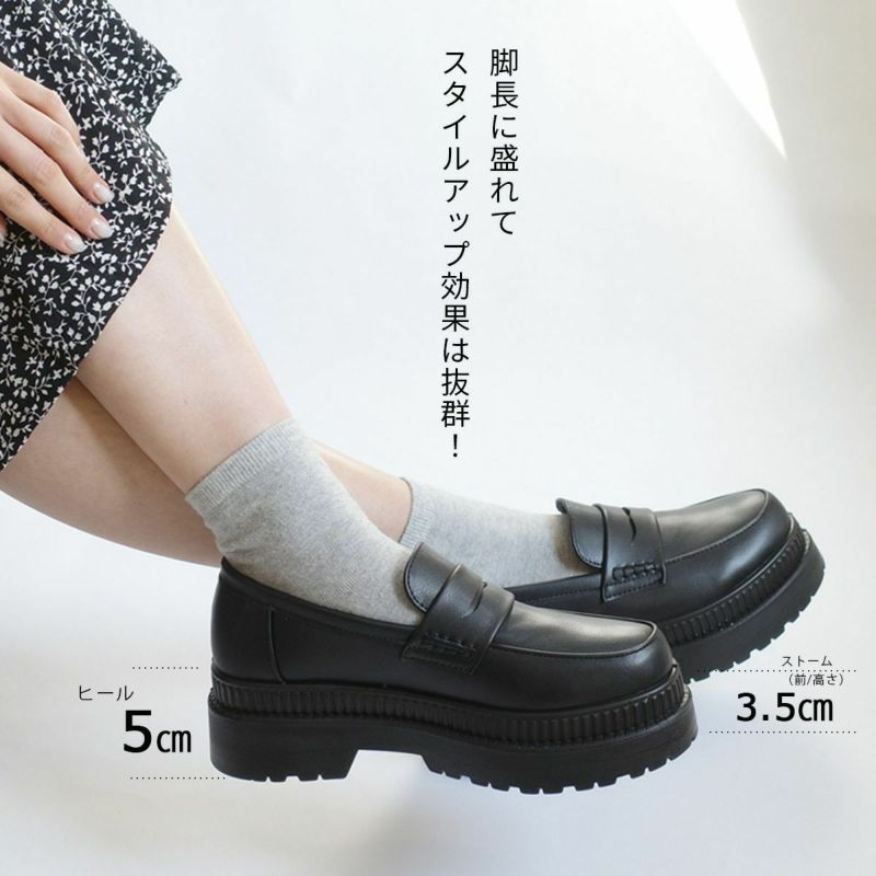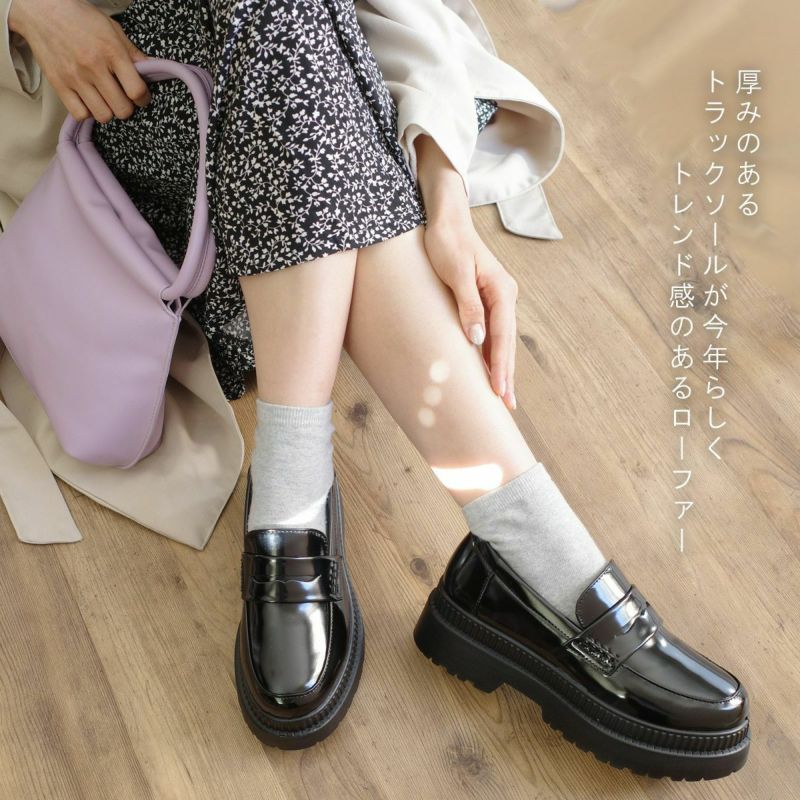 ボリューミーなトラックソールがポイントの厚底ローファー!