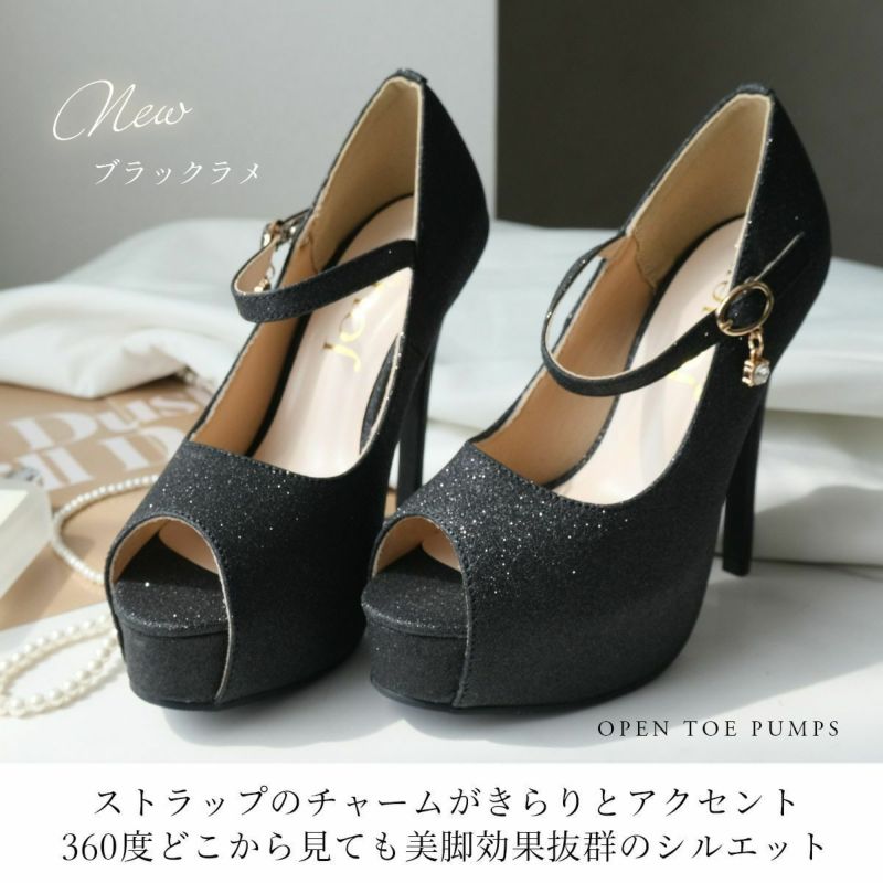 歩くたびきらりと揺れるチャーム付きオープントゥパンプス