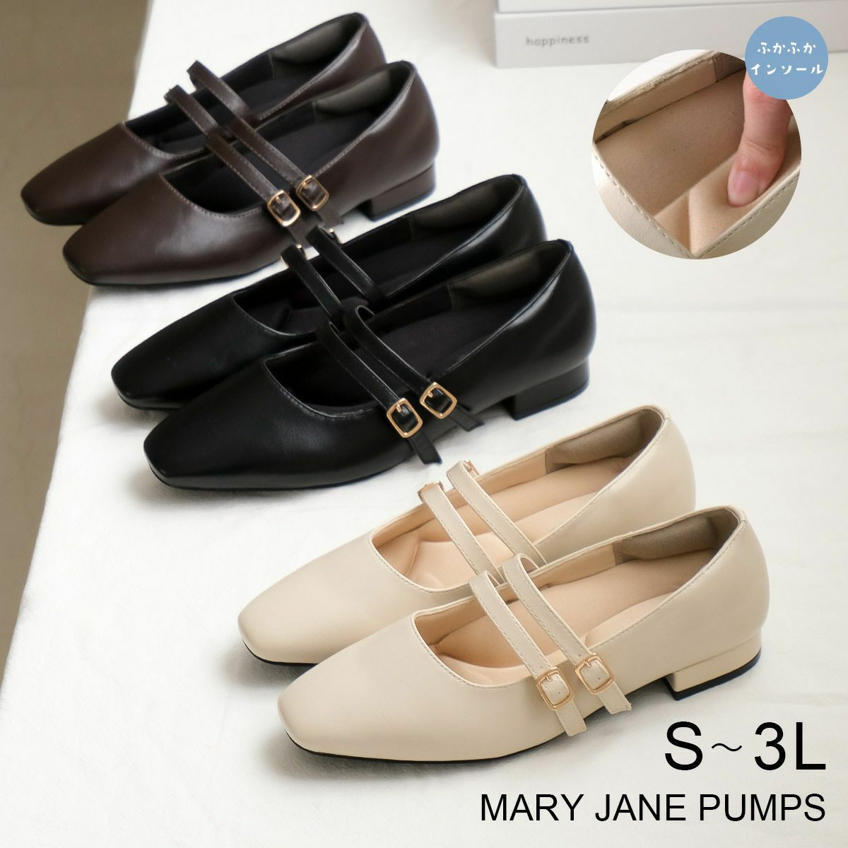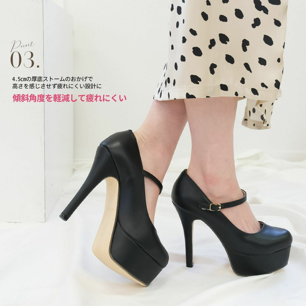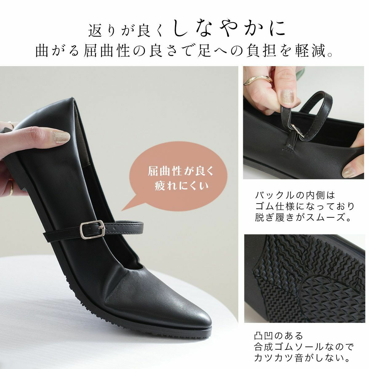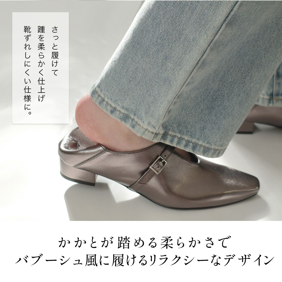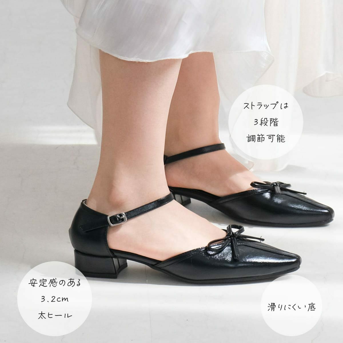 かかとが踏める2WAYメリージェーン4cm太ヒールパンプス レディース