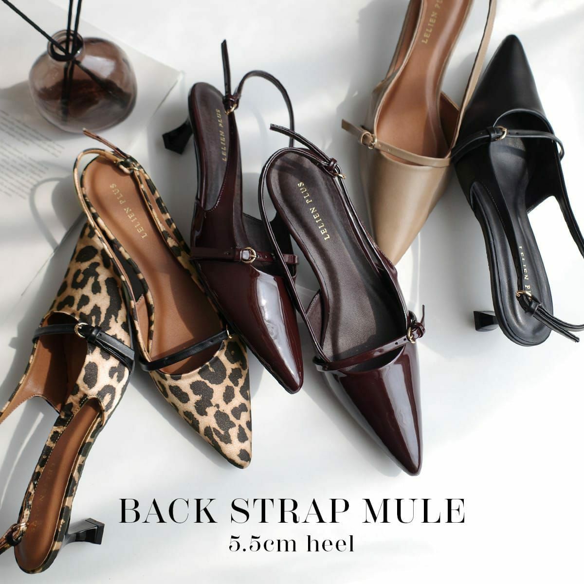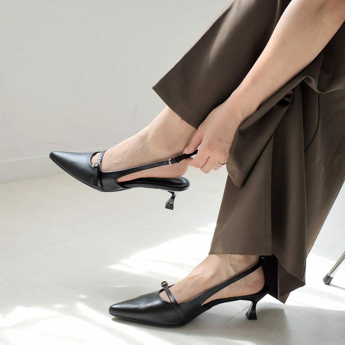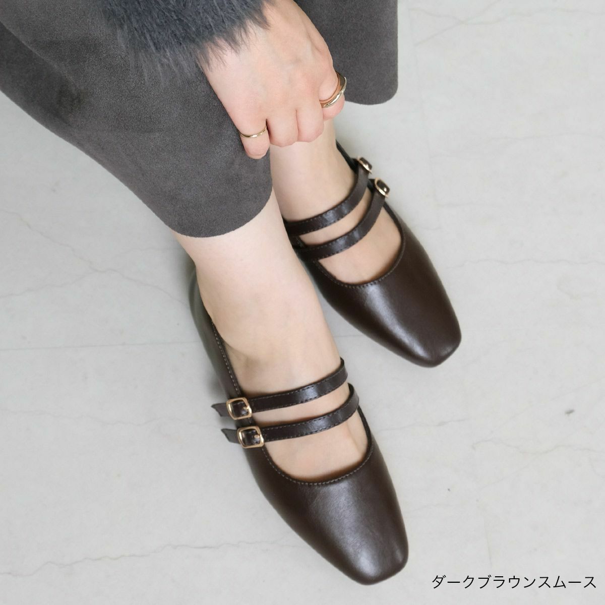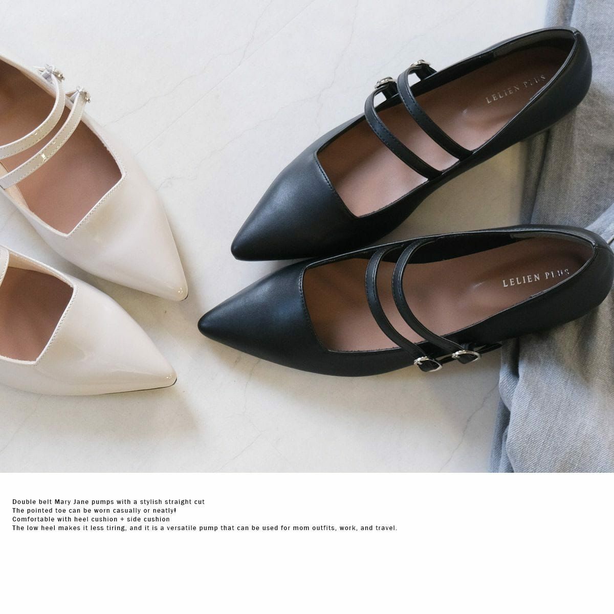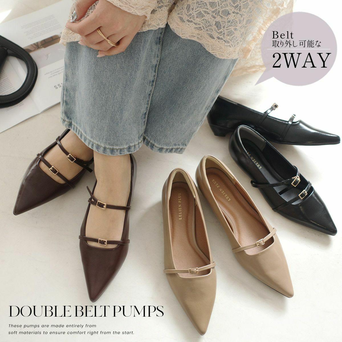 かかとが踏める2WAYメリージェーン4cm太ヒールパンプス レディース