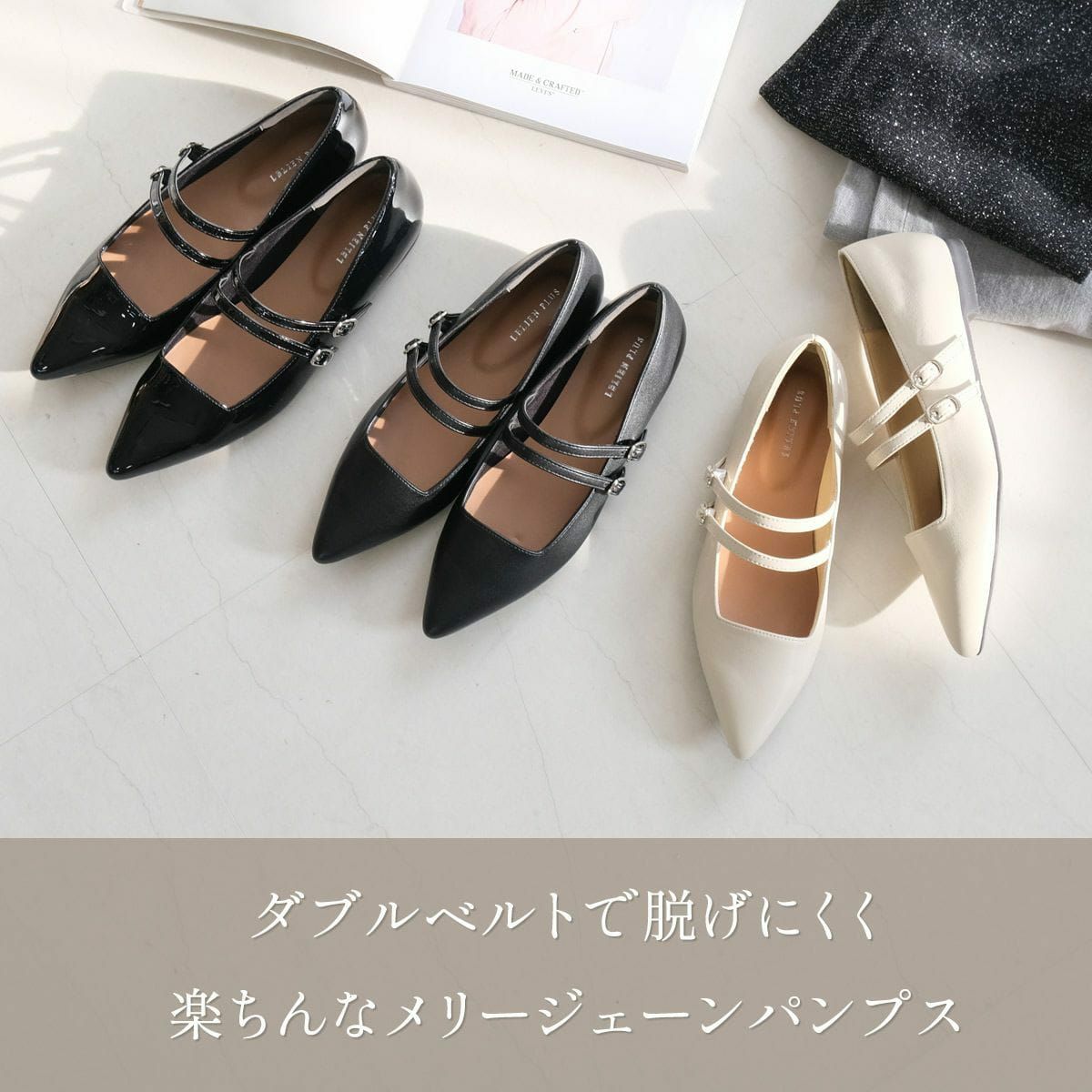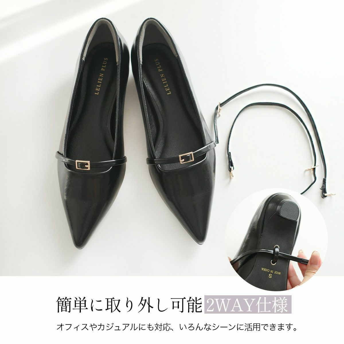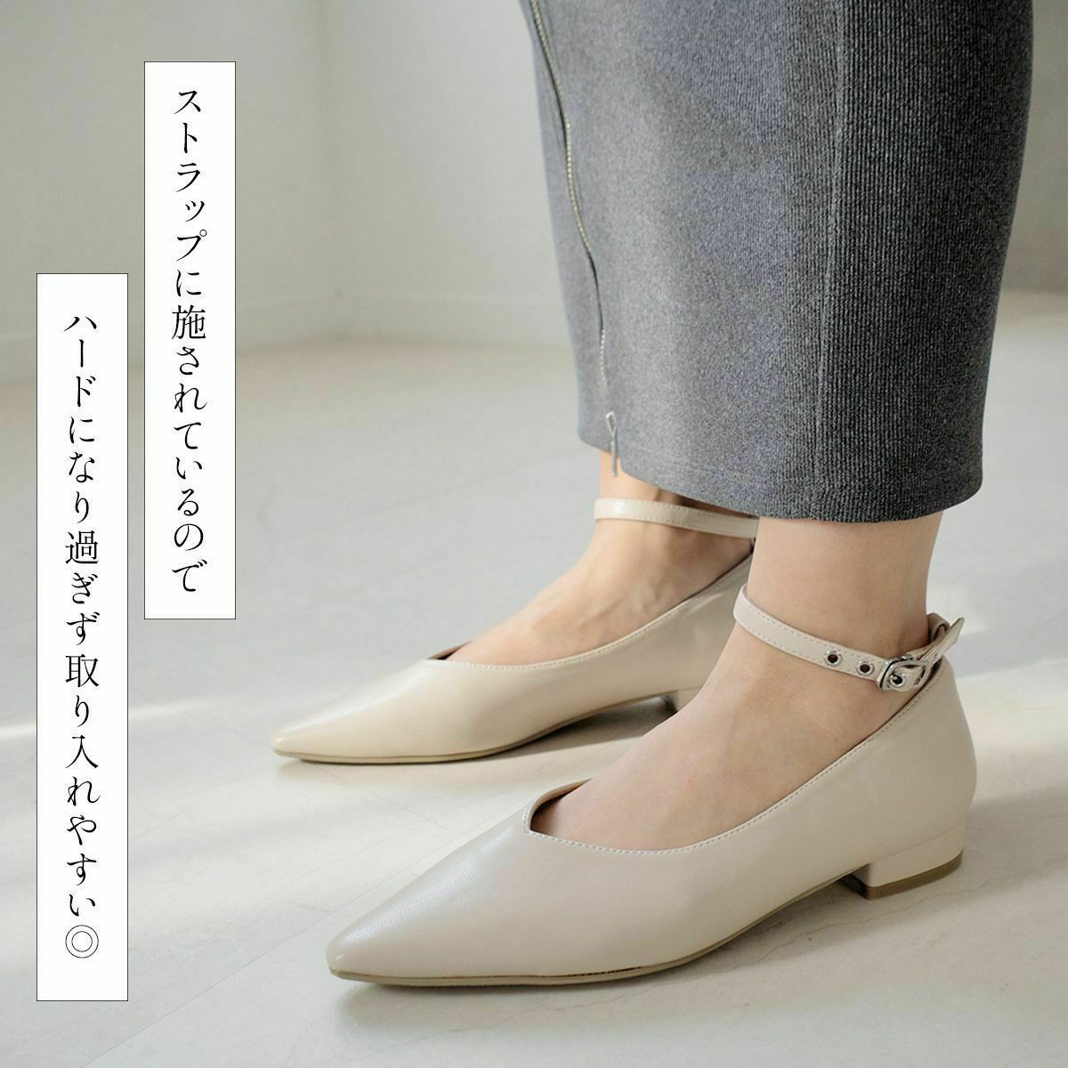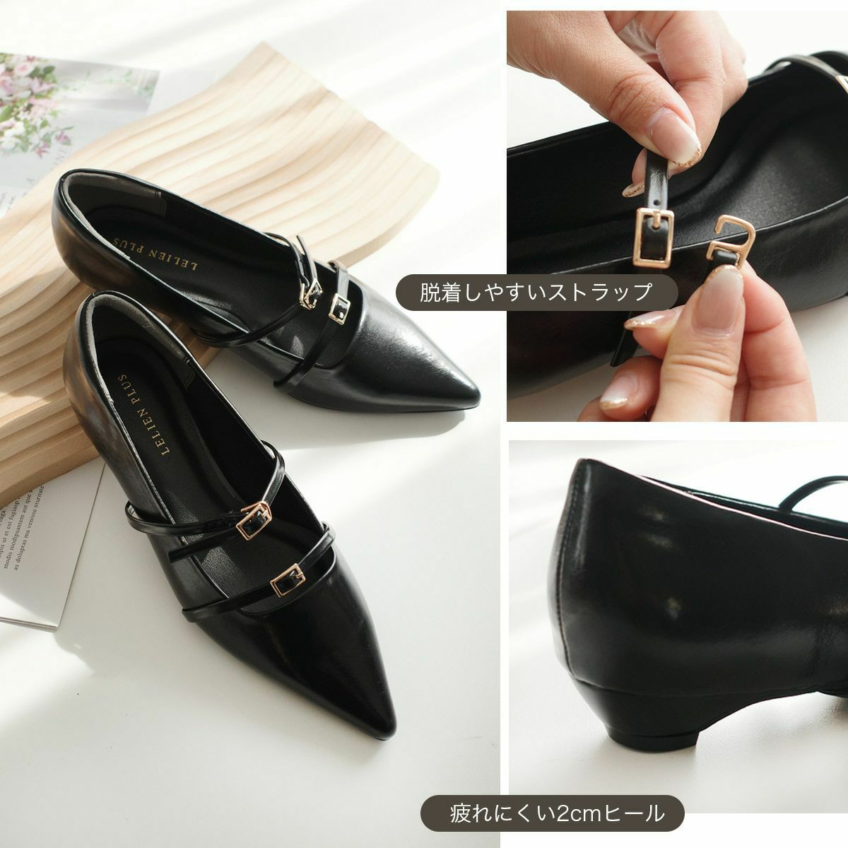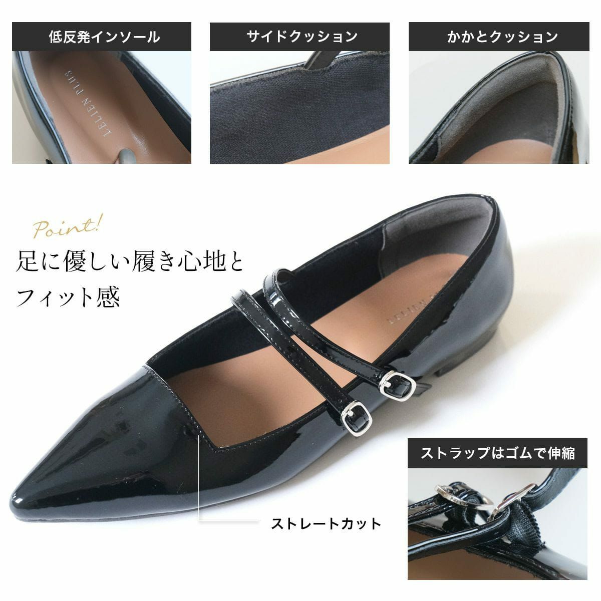 【期間限定SALE】ポインテッドトゥメリージェーンパンプスストラップ レディース