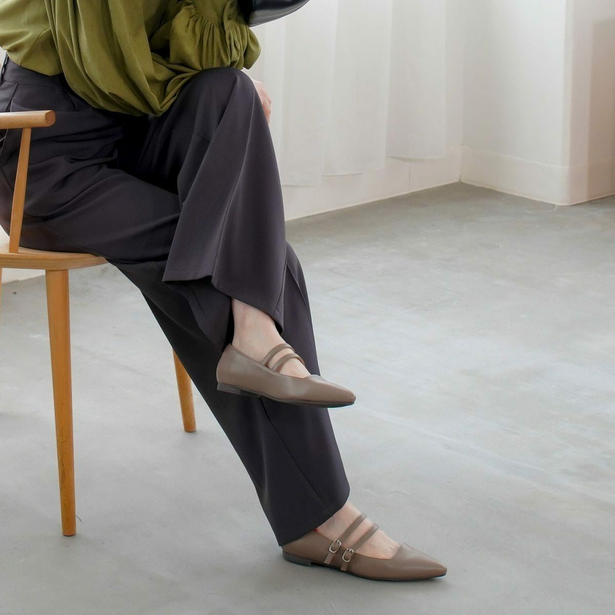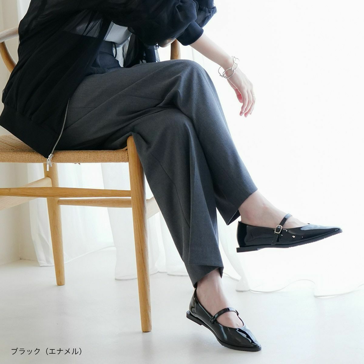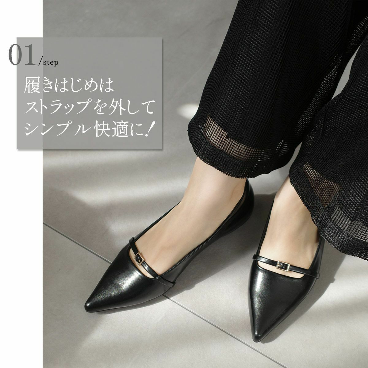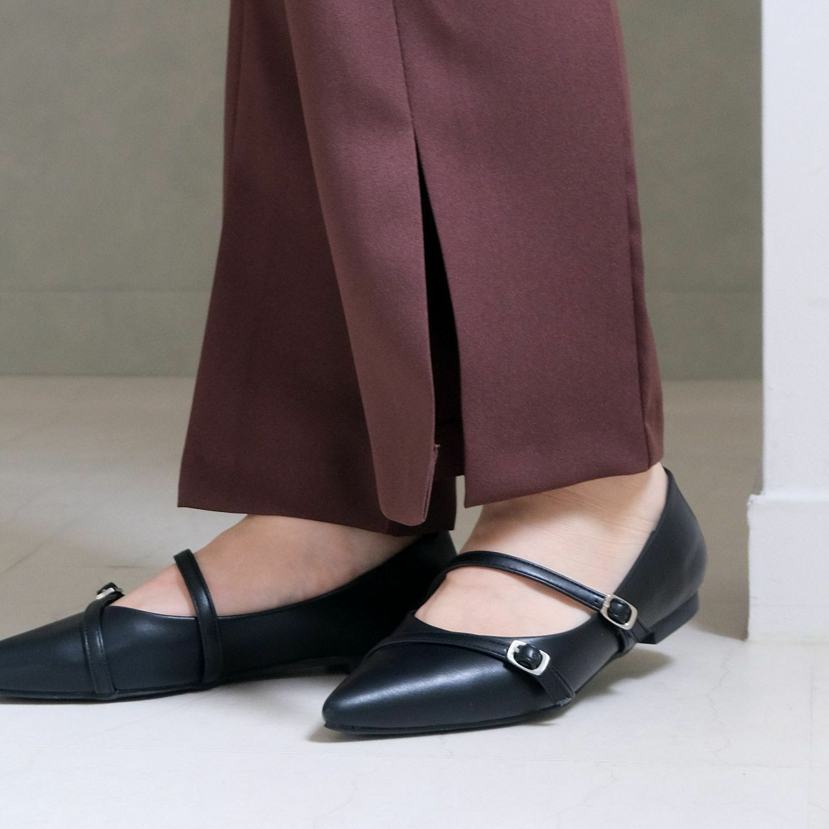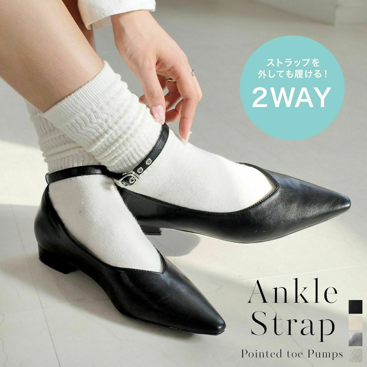 【期間限定SALE】ポインテッドトゥメリージェーンパンプスストラップ レディース