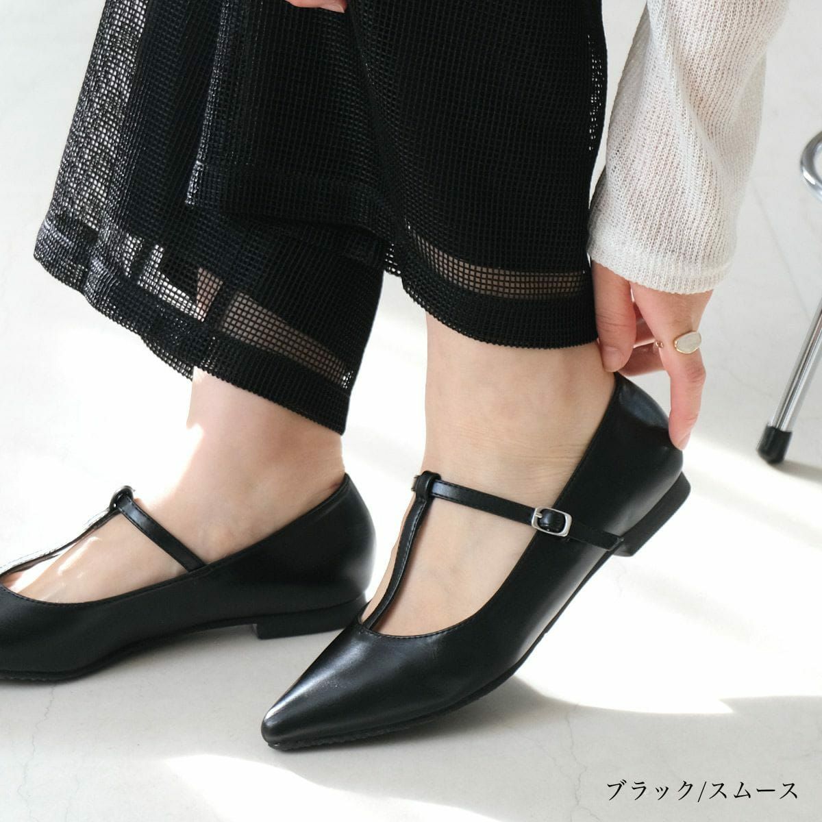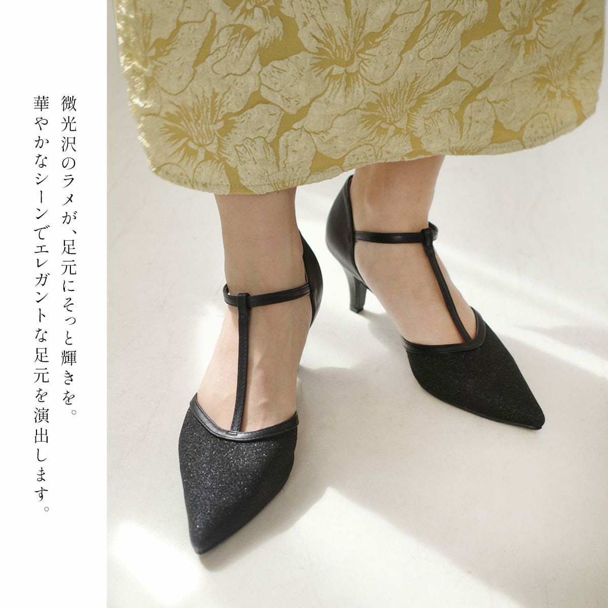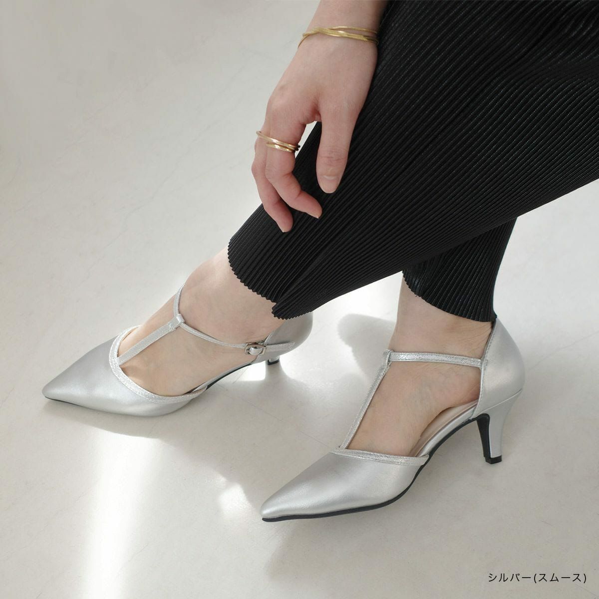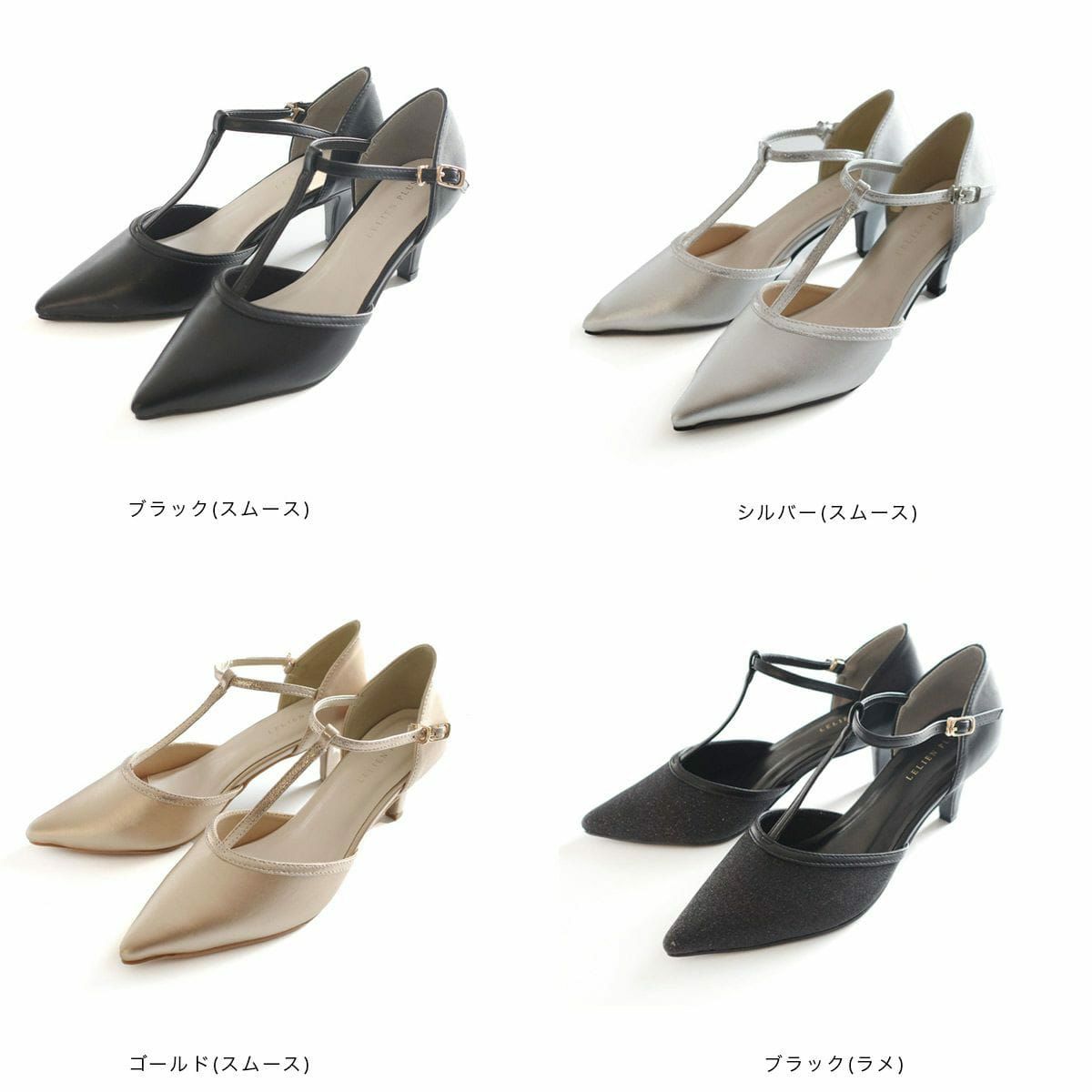 ポインテッドトゥTストラップパンプス レディース