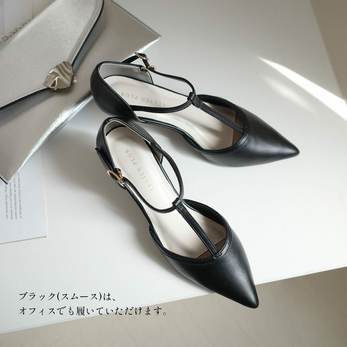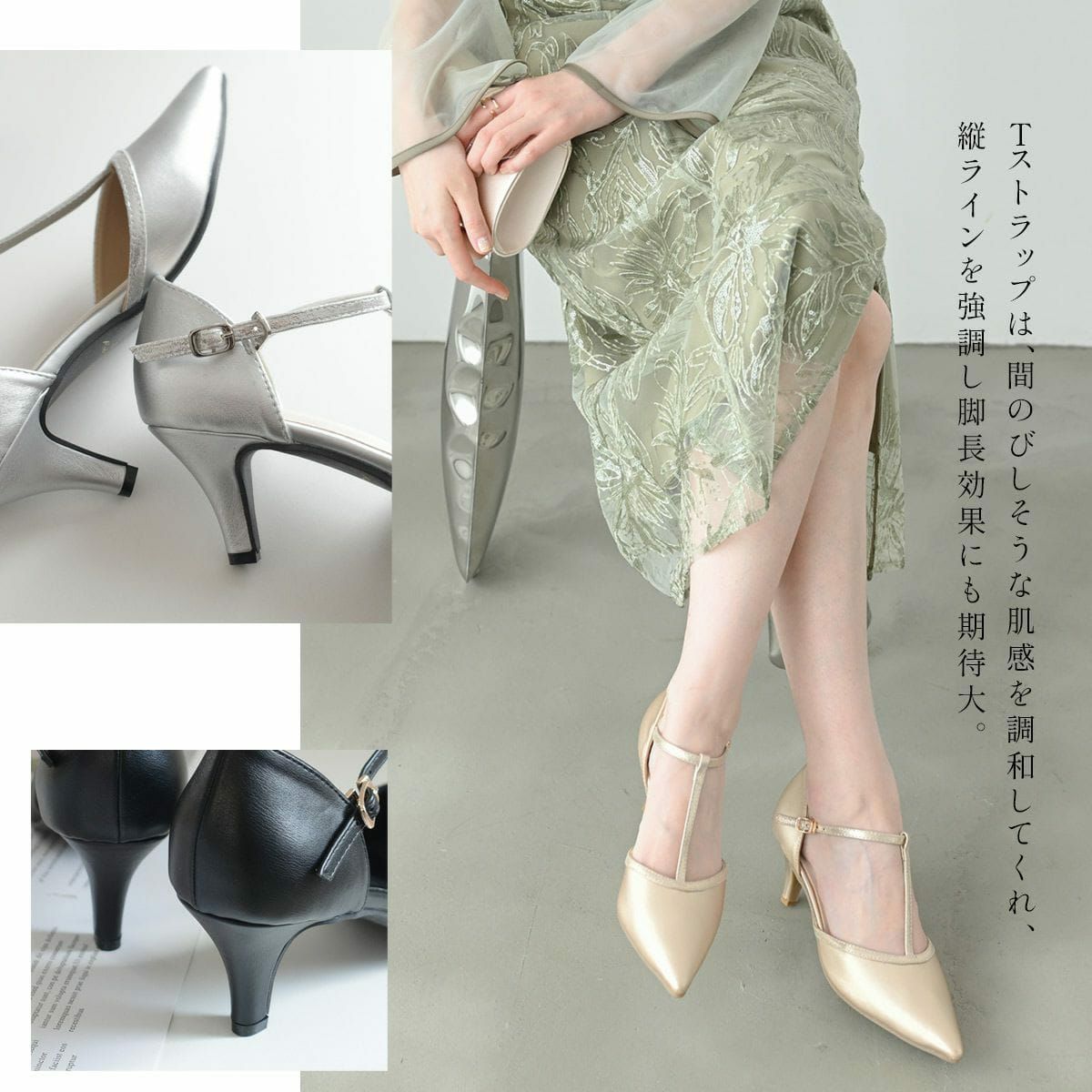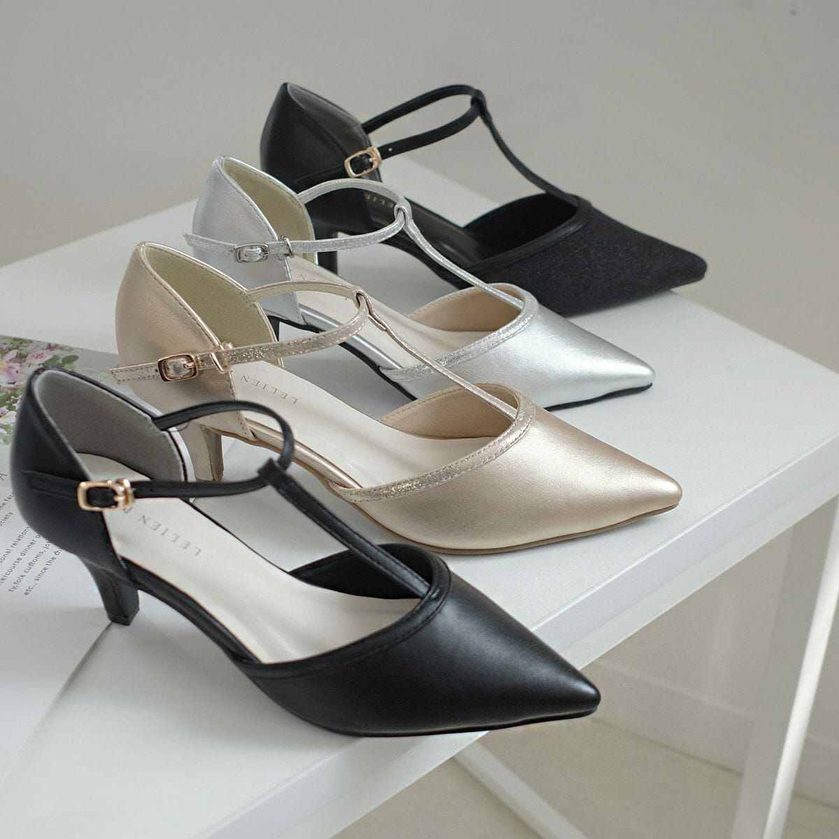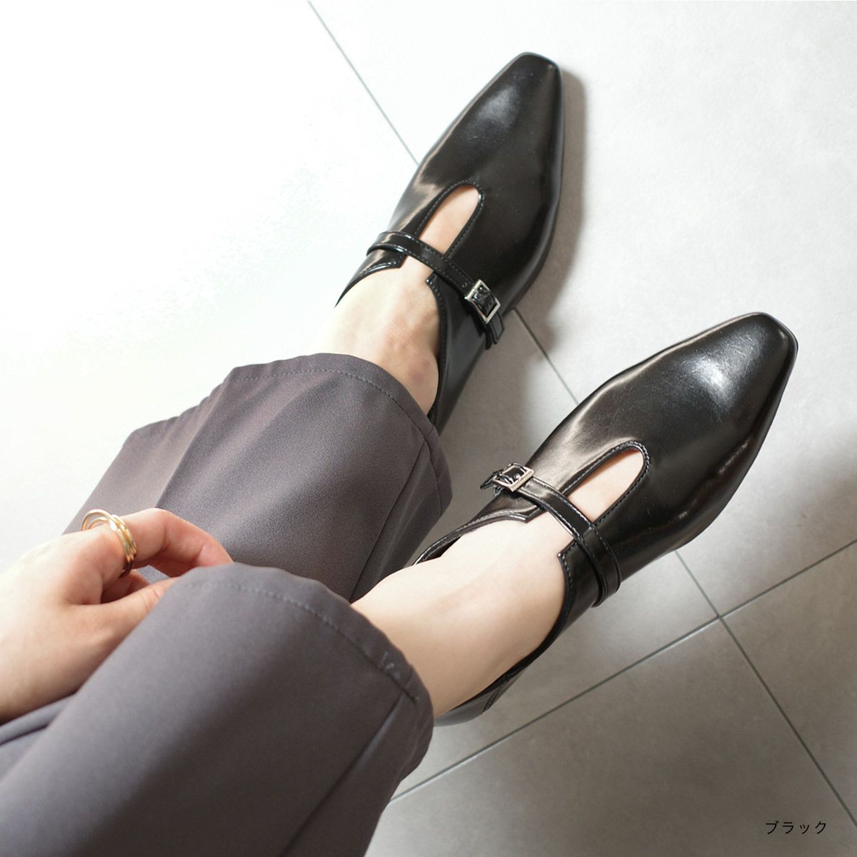 ポインテッドトゥTストラップパンプス レディース