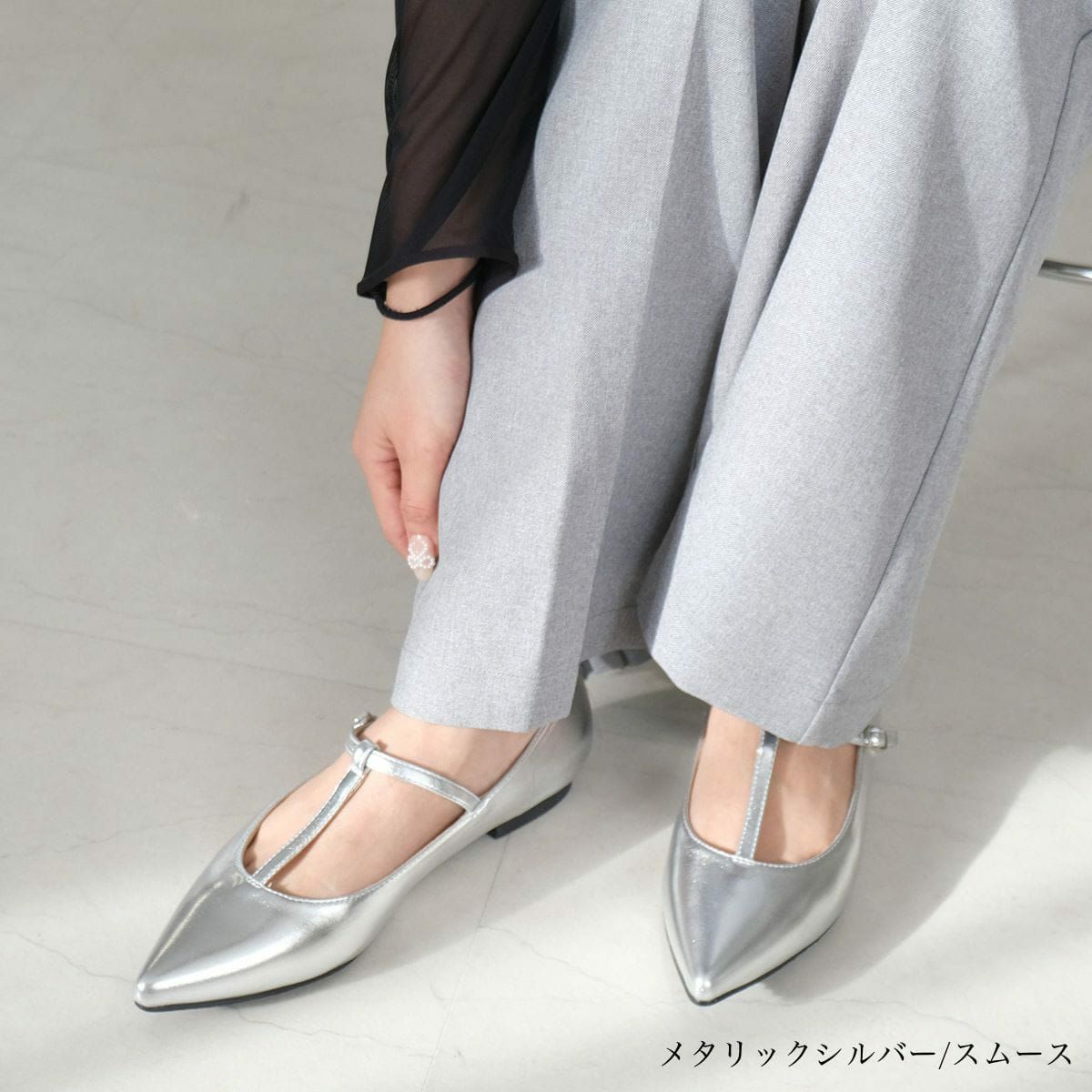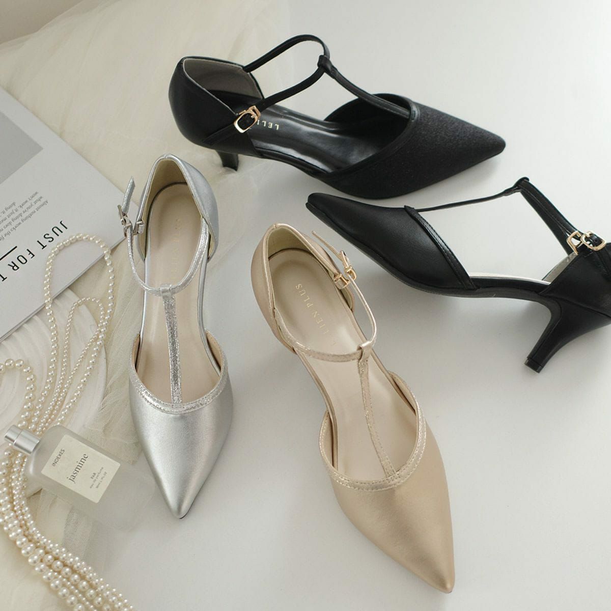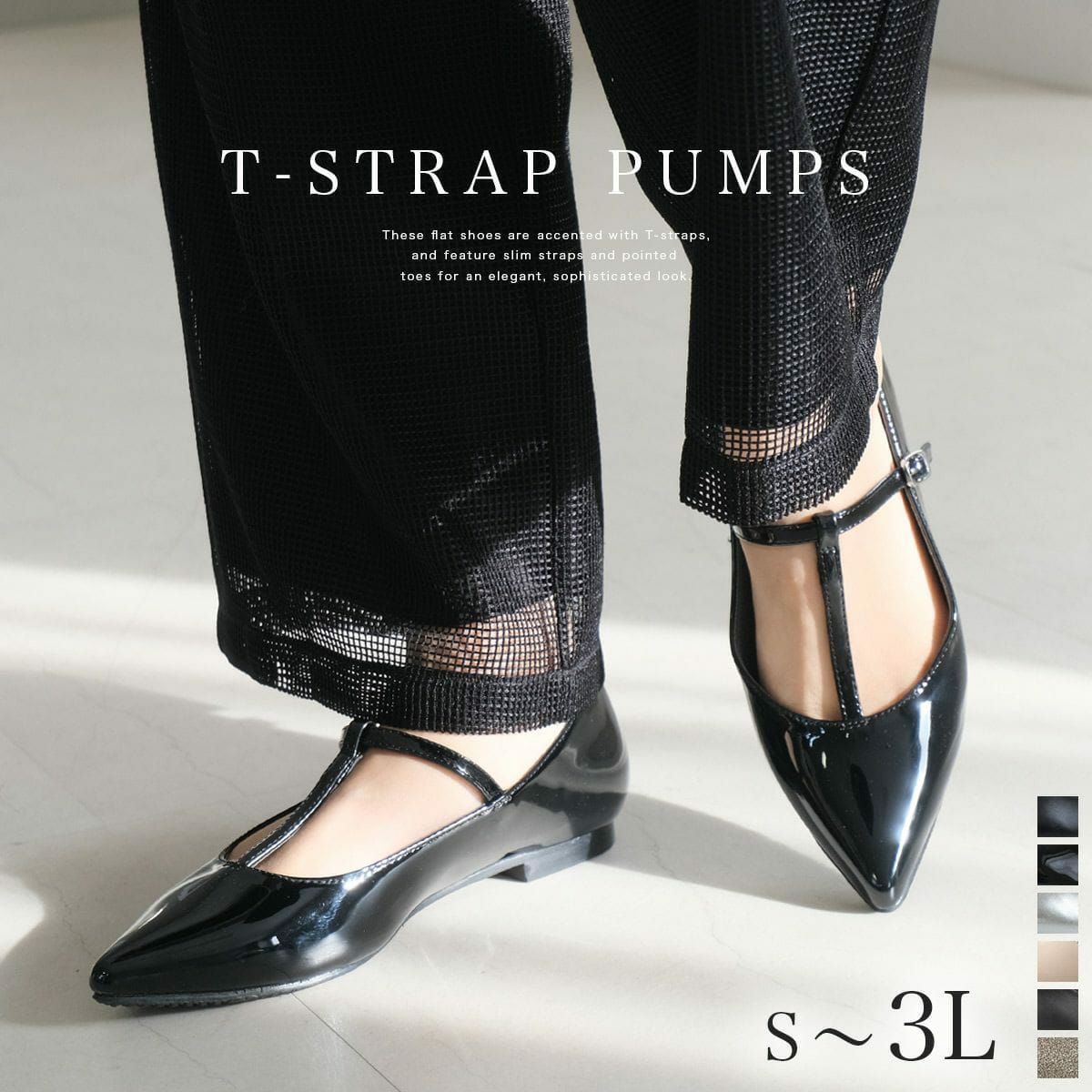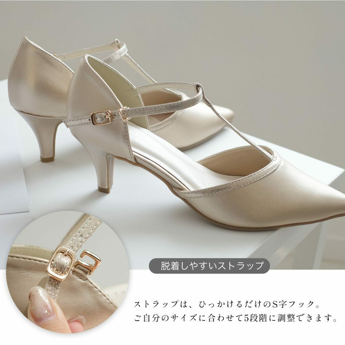 ポインテッドトゥTストラップパンプス レディース