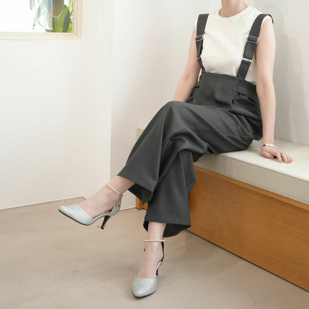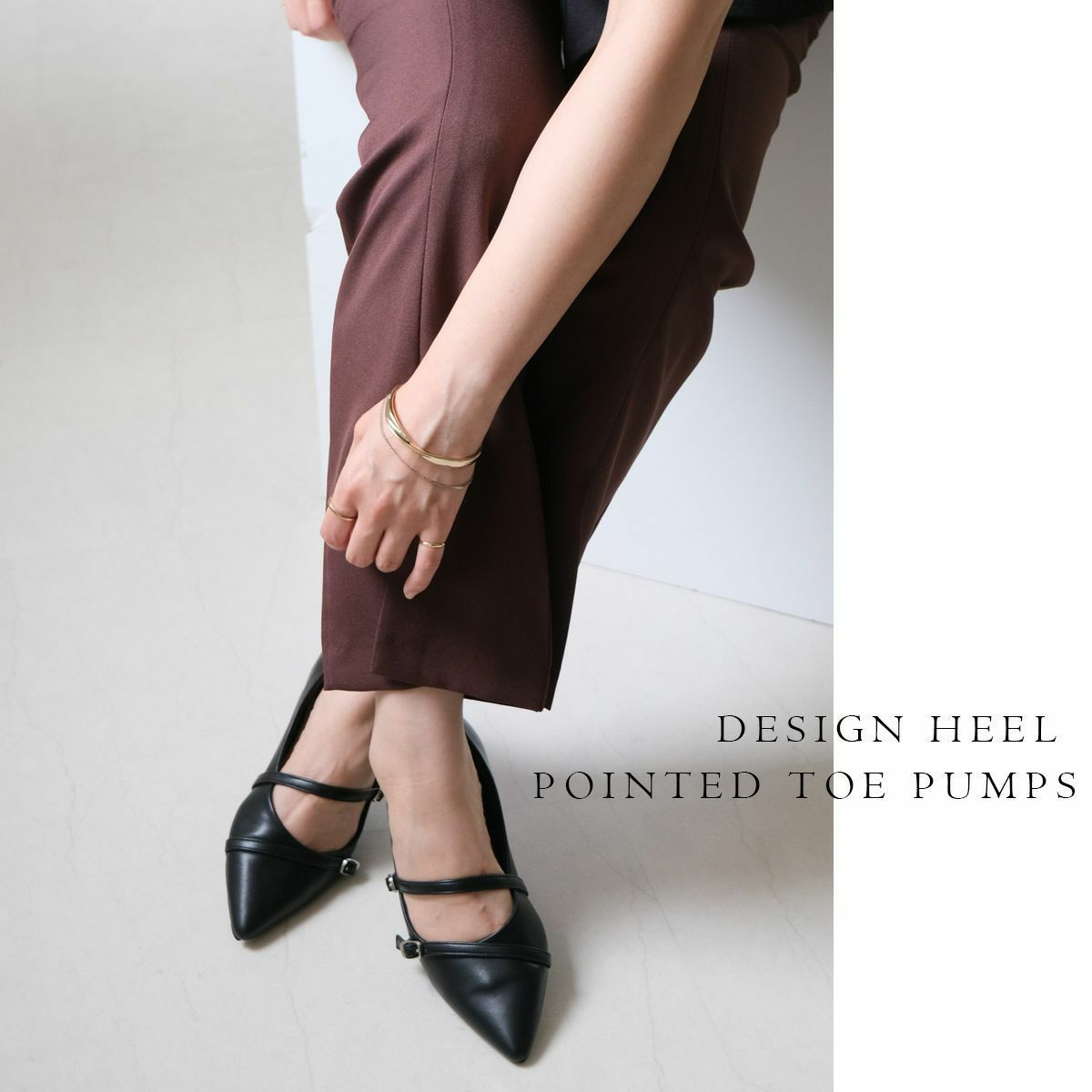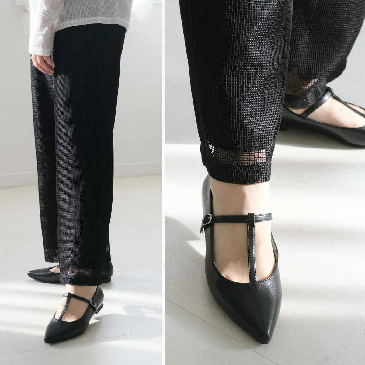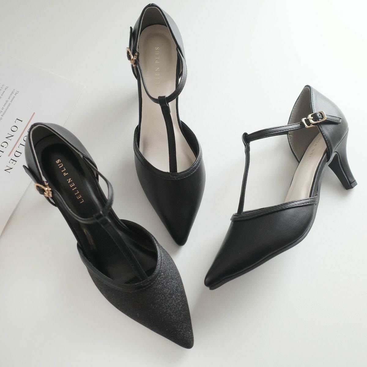 ポインテッドトゥTストラップパンプス レディース