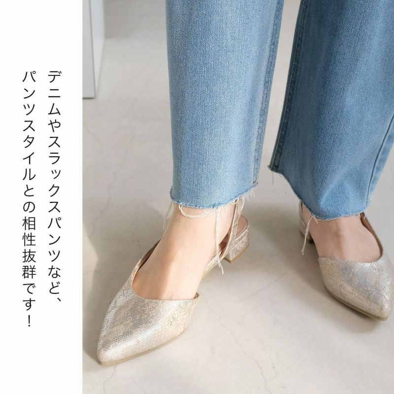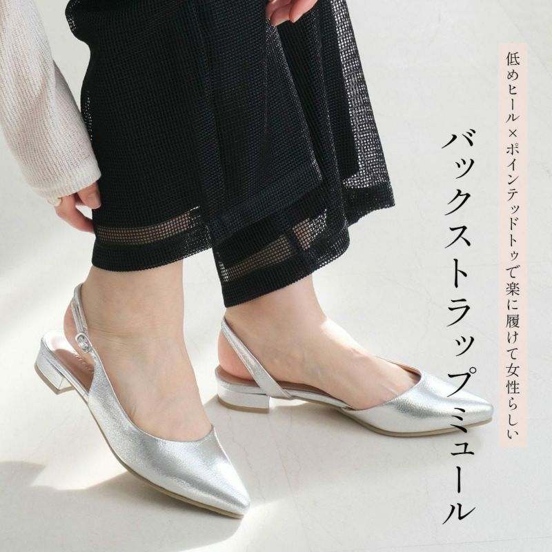 大人っぽい雰囲気のバックストラップミュールパンプス。