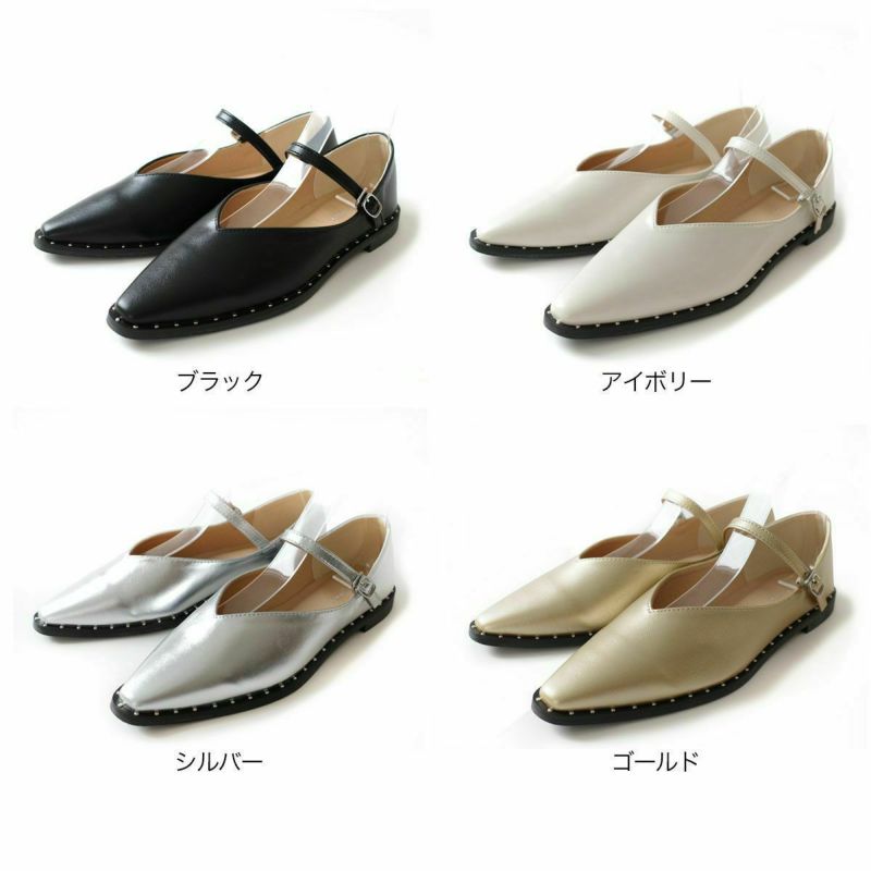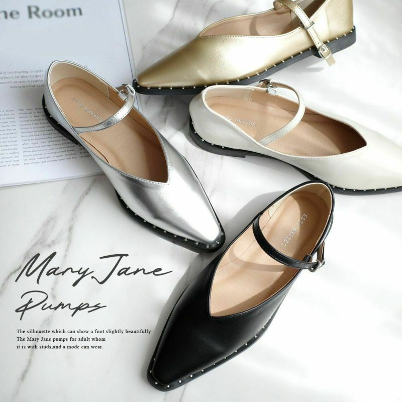 【在庫限り!特別価格!】メリージェーンパンプススタッズVカット レディース