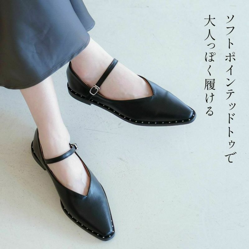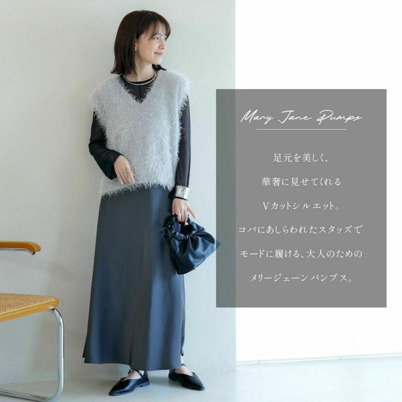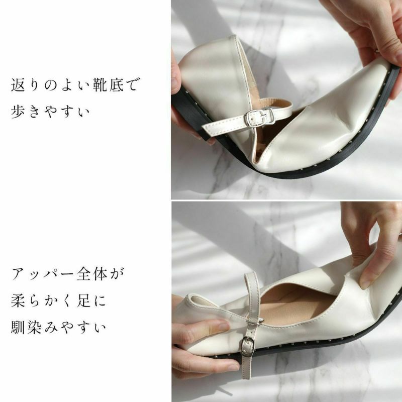 コバのスタッズでモードに履ける大人のメリージェーンパンプス