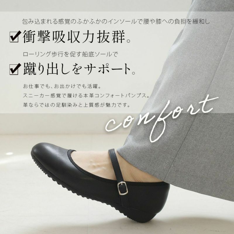 スニーカー感覚で履ける本革コンフォートパンプス。