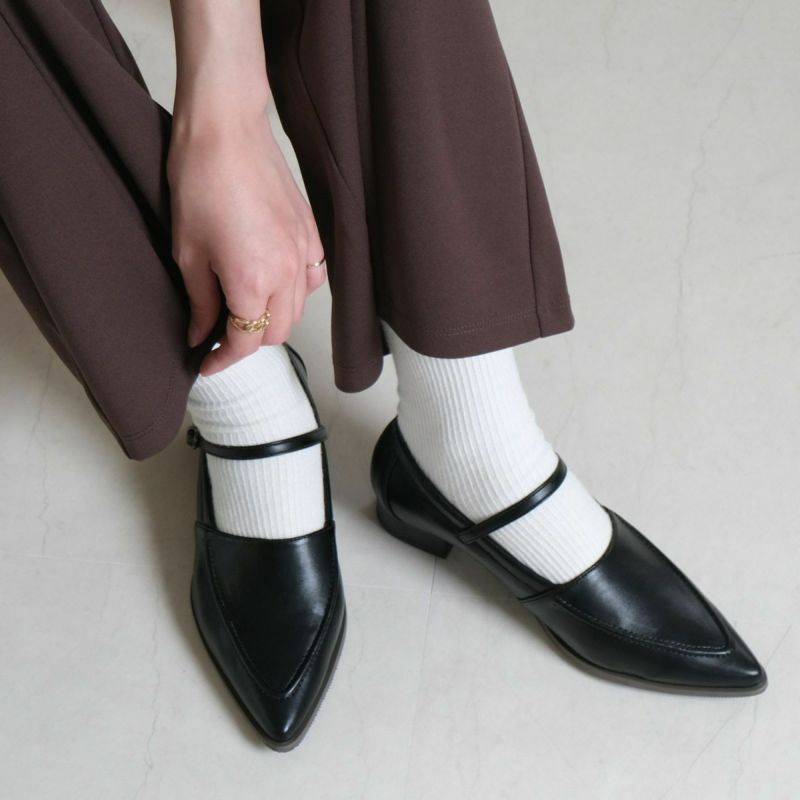 すらりとしたポインテッドトゥなので低めヒールでもシャープな足元が叶います。脱げにくく、カジュアルからキレイめまで活躍する優秀パンプスです。