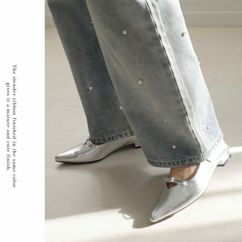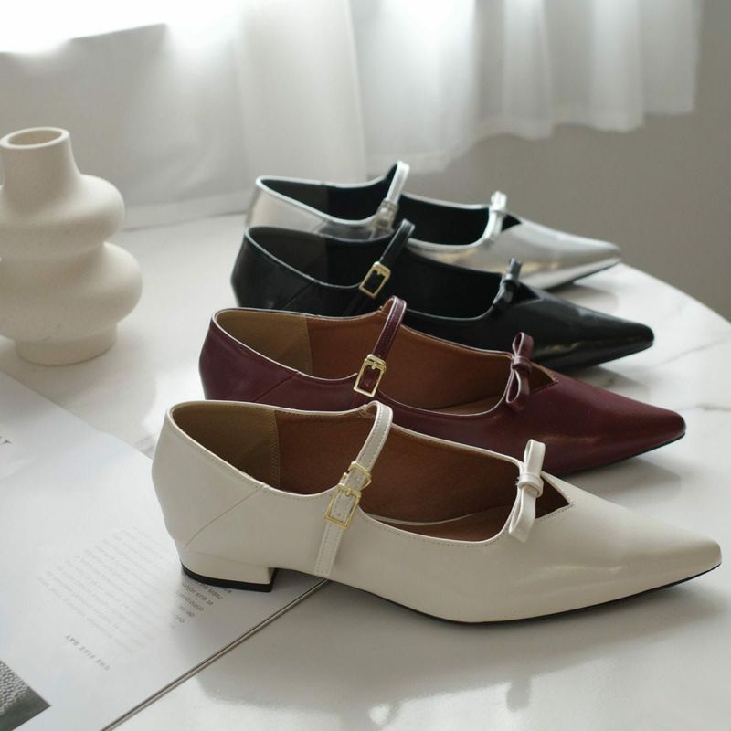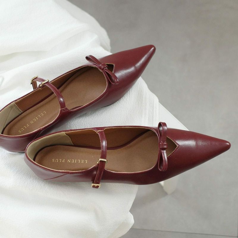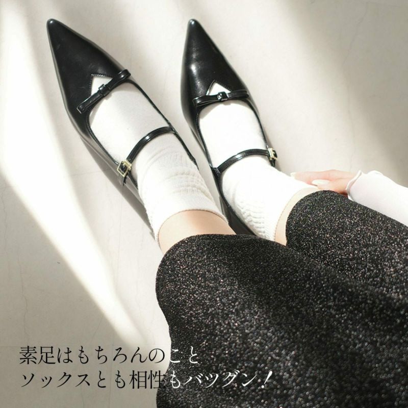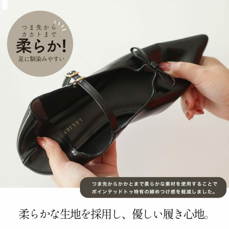 ポインテッドトゥリボンパンプスメリージェーンストラップ レディース