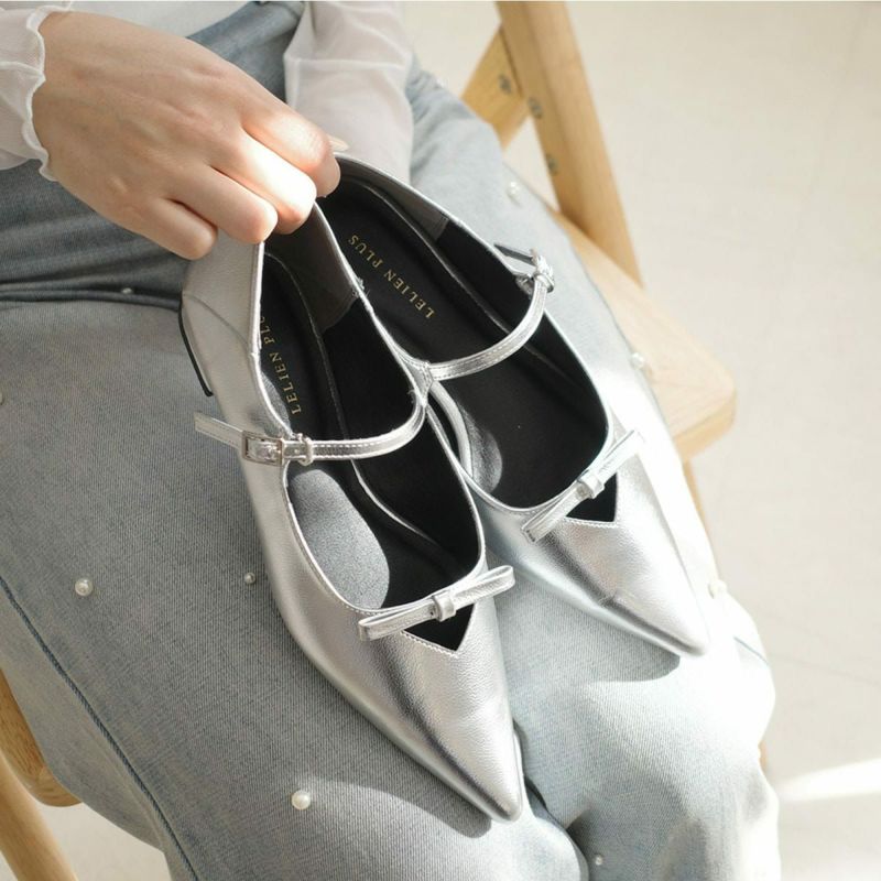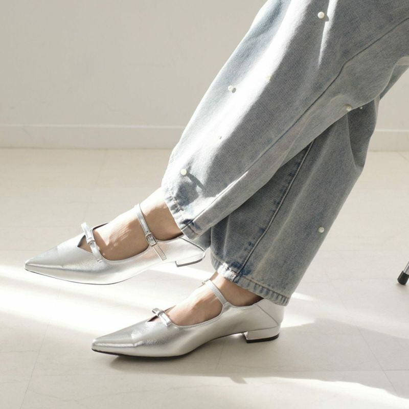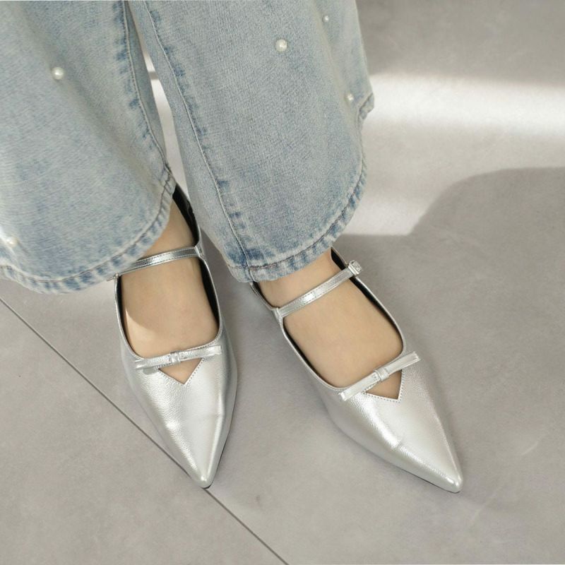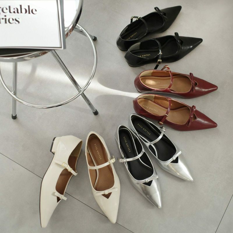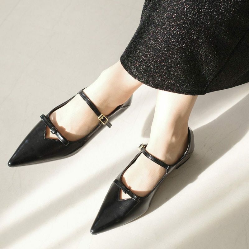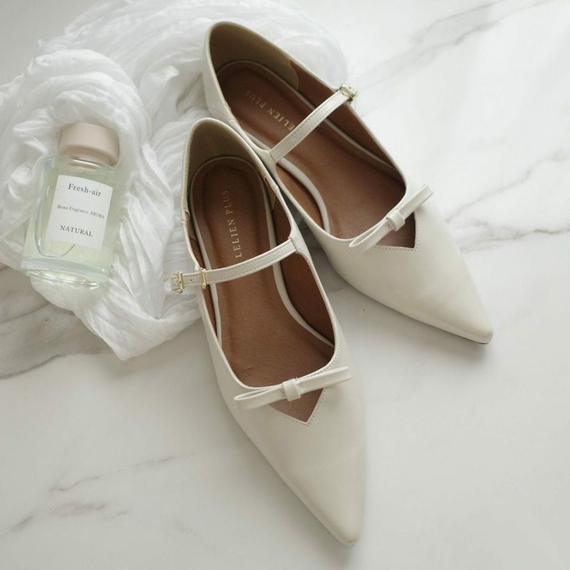 ポインテッドトゥリボンパンプスメリージェーンストラップ レディース