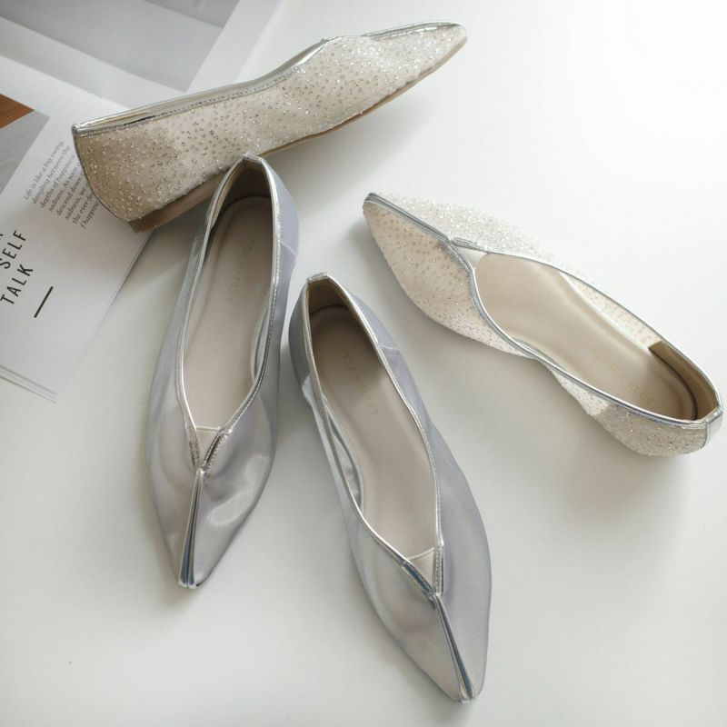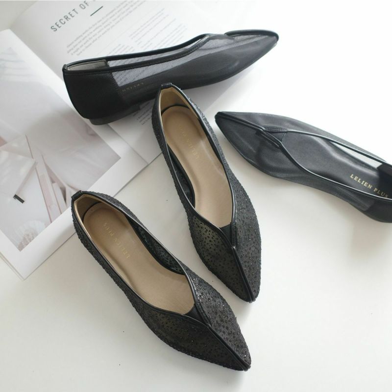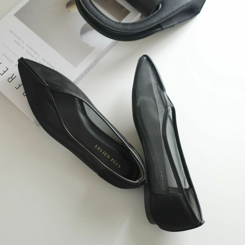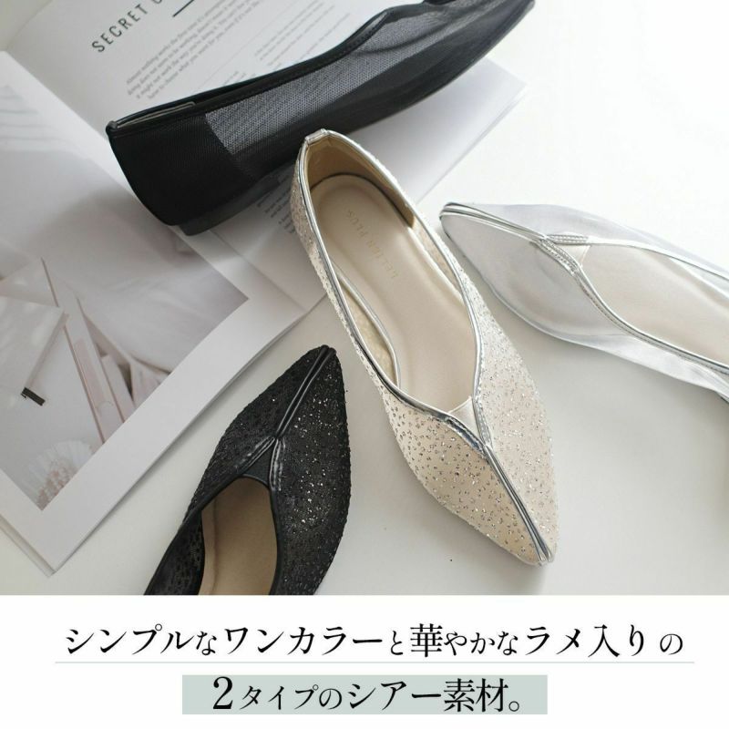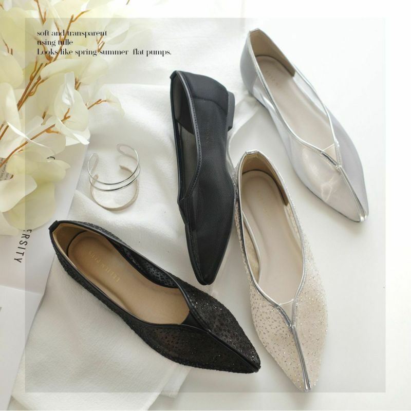 柔らかく透け感のあるチュールを使用したフラットパンプス