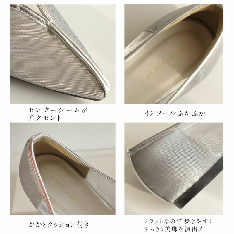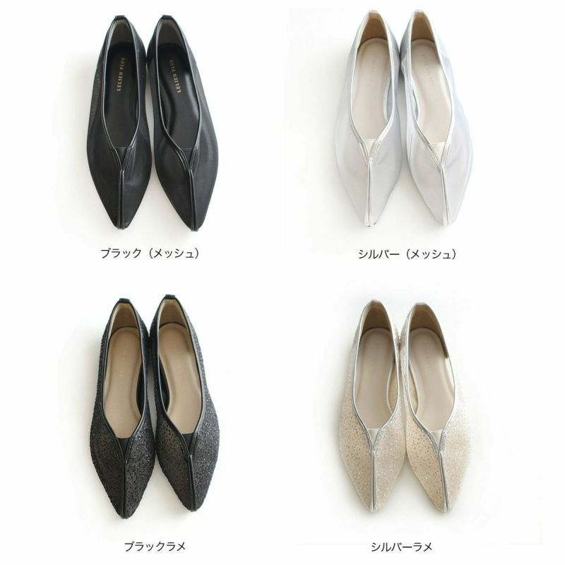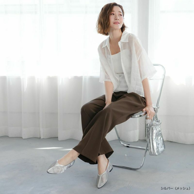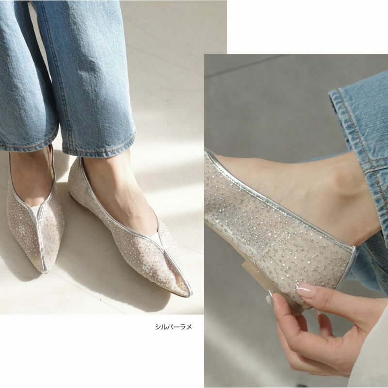 ポインテッドトゥVカットシアーメッシュパンプスチュールラメ レディース