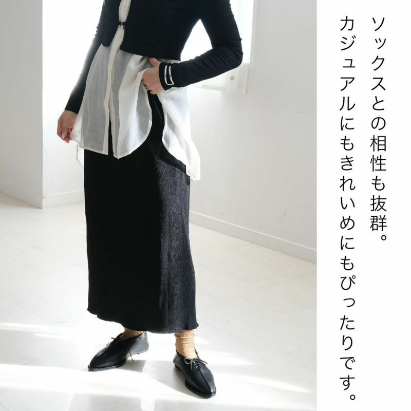 幅も長さもちょうどで履けます。柔らかいので、ソックス着用でも問題なく履けます。