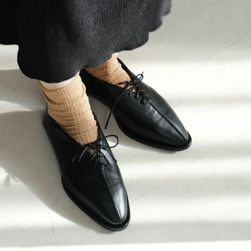 柔らかな生地で、かかとを踏んでバブーシュとしても履けるレースアップシューズ