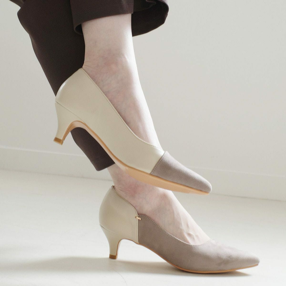 ポインテッドトゥバイカラーパンプスレディース靴 レディース