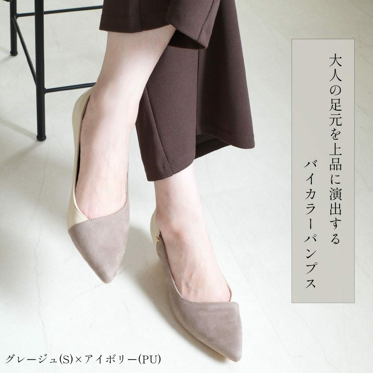 ポインテッドトゥバイカラーパンプスレディース靴 レディース