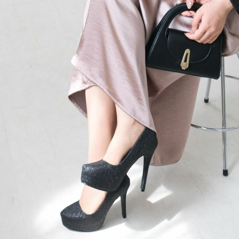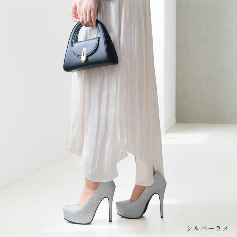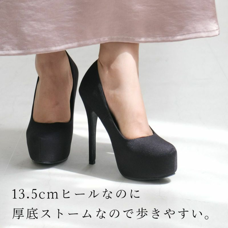 13.5cmヒールなのに厚底ストームなので歩きやすい。低反発クッションインソールは履き心地◎