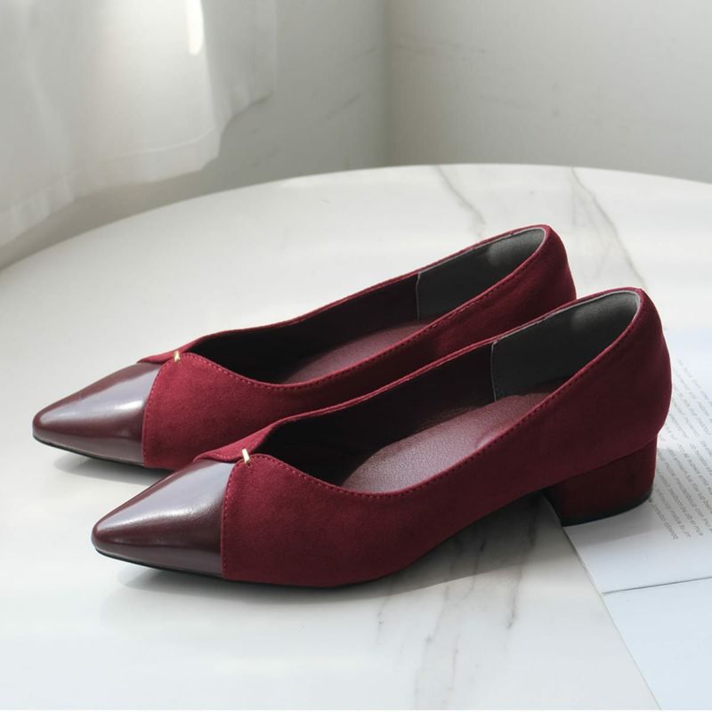 3.5cmの安定感ある太ヒールでさりげなくスタイルアップ!歩きやすさと美しさ、どちらも叶えるVカットデザインの大人パンプス