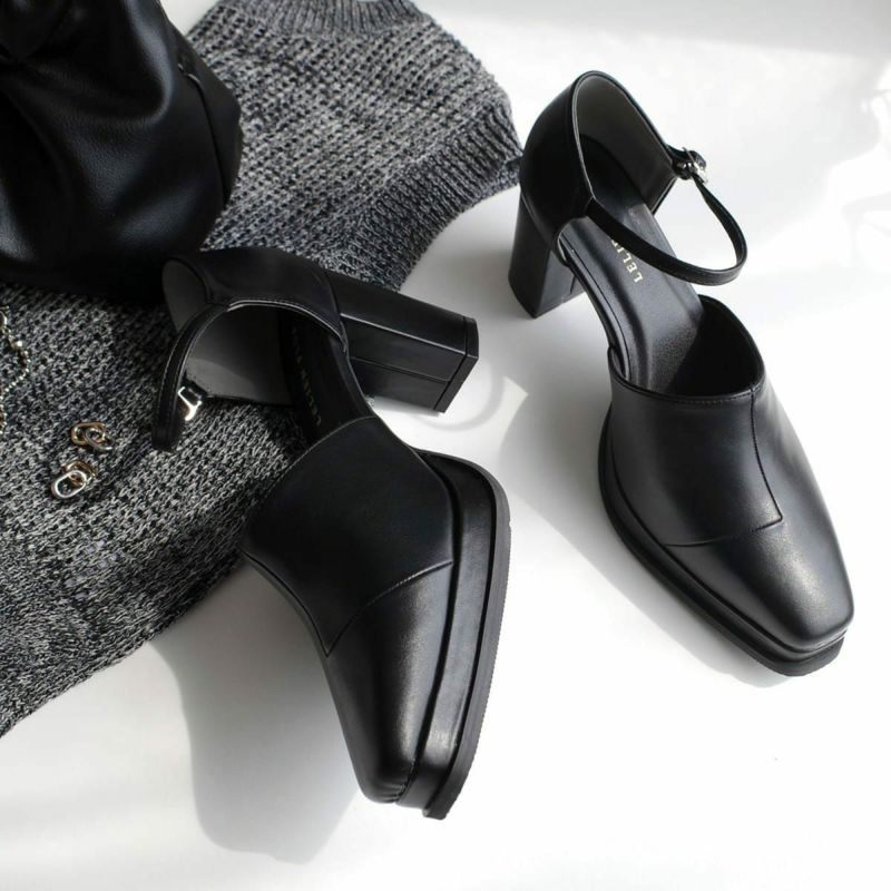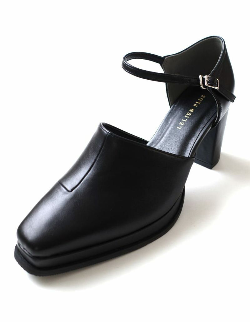コバ出しデザインとスクエアトゥ、艶を抑えたブラックでモードな印象に。