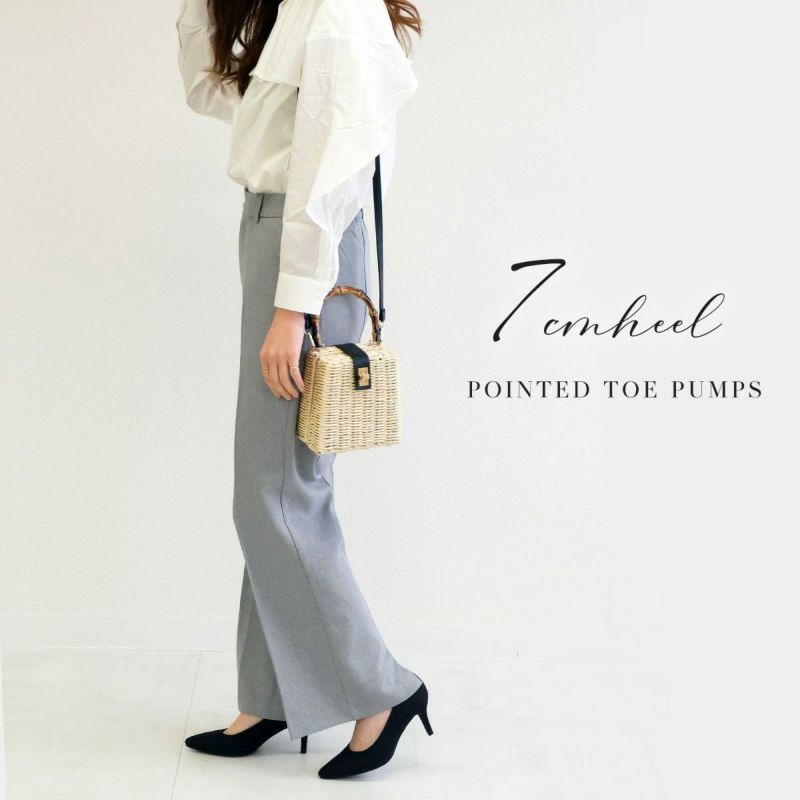 ポインテッドトゥパンプス7cm生地巻きヒール レディース