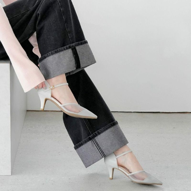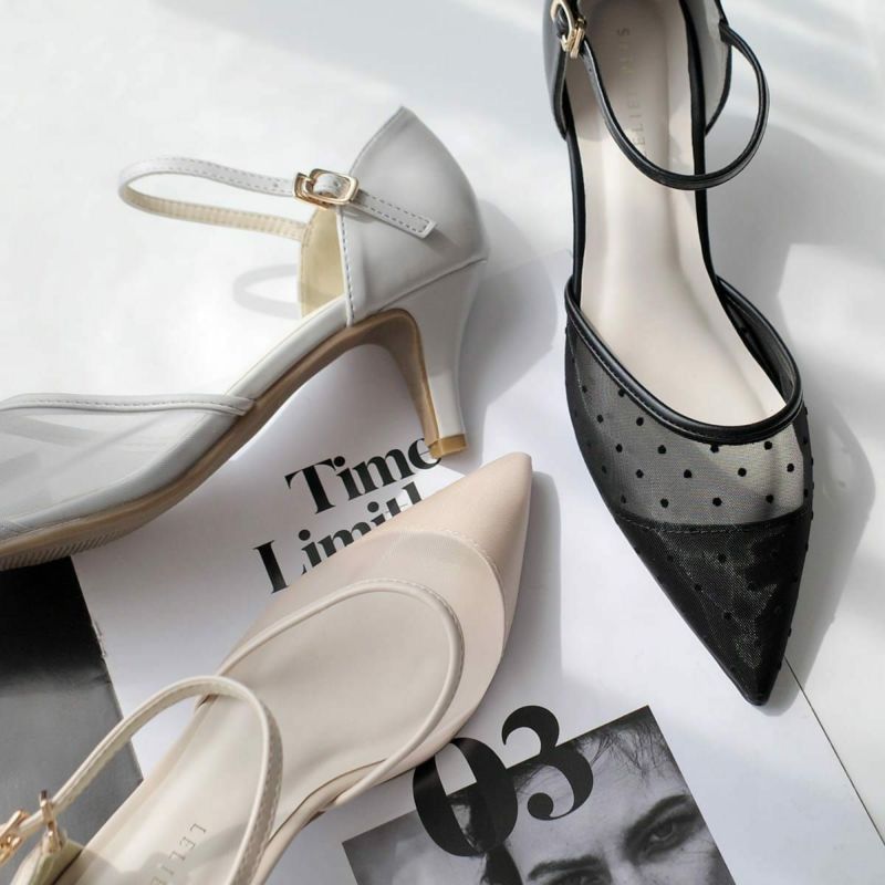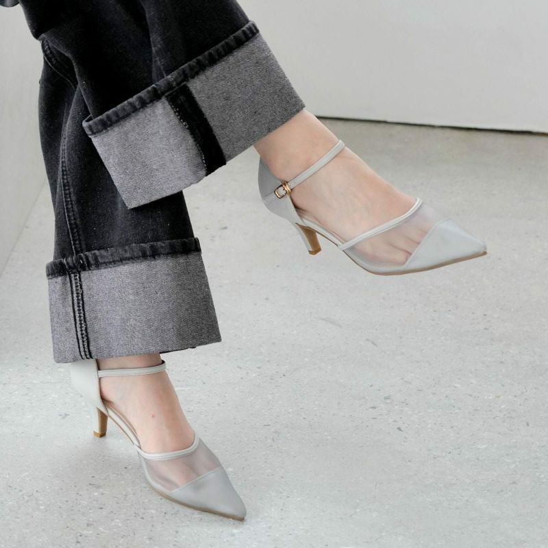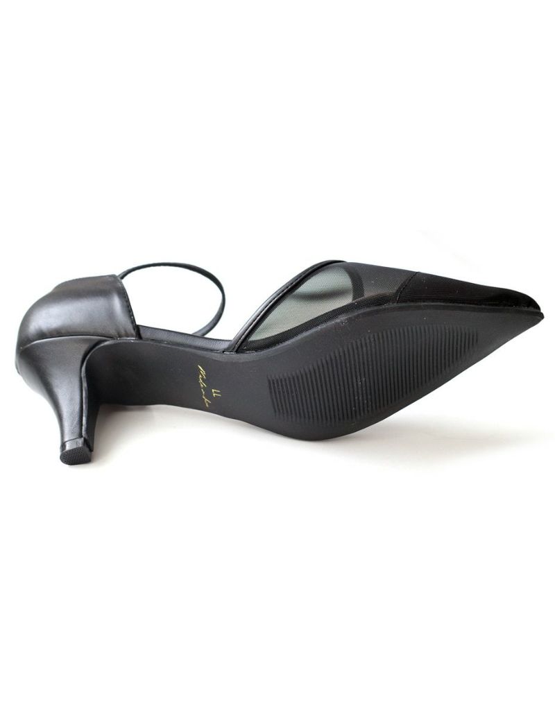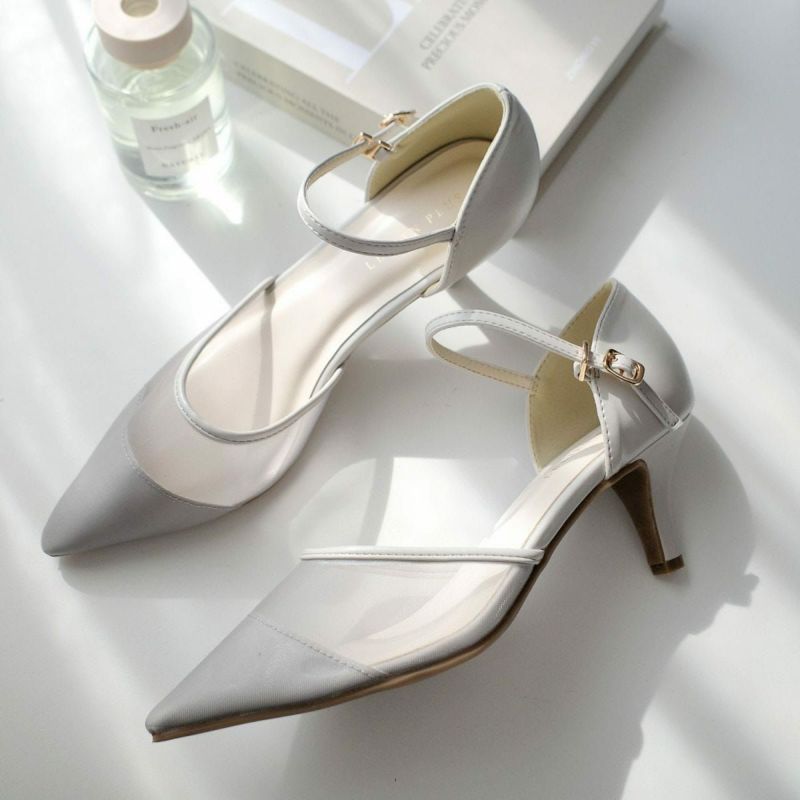 つま先・かかとが隠れた6.5cmの細いヒールで、チュールの透け感がエレガントな足元を演出します。結婚式や披露宴にお呼ばれした時の靴のマナーをきちんとクリアしたデザインなので、安心して履いていただけます。