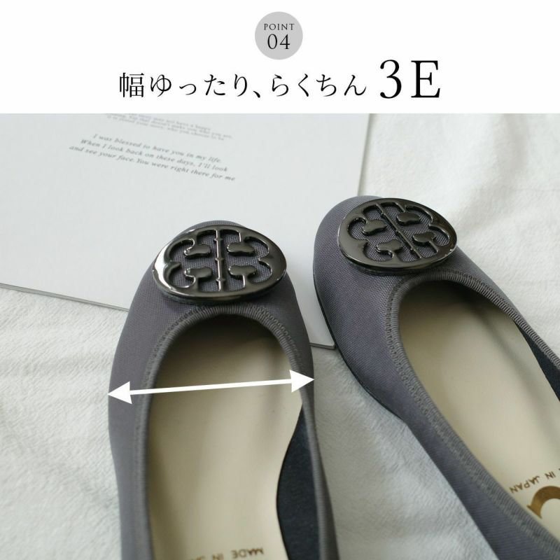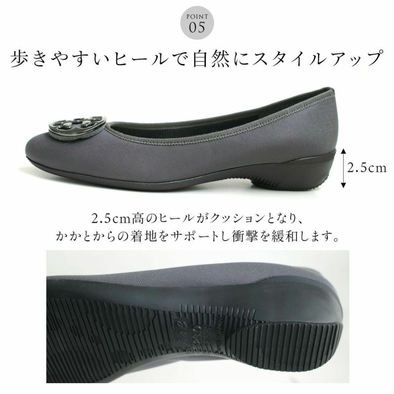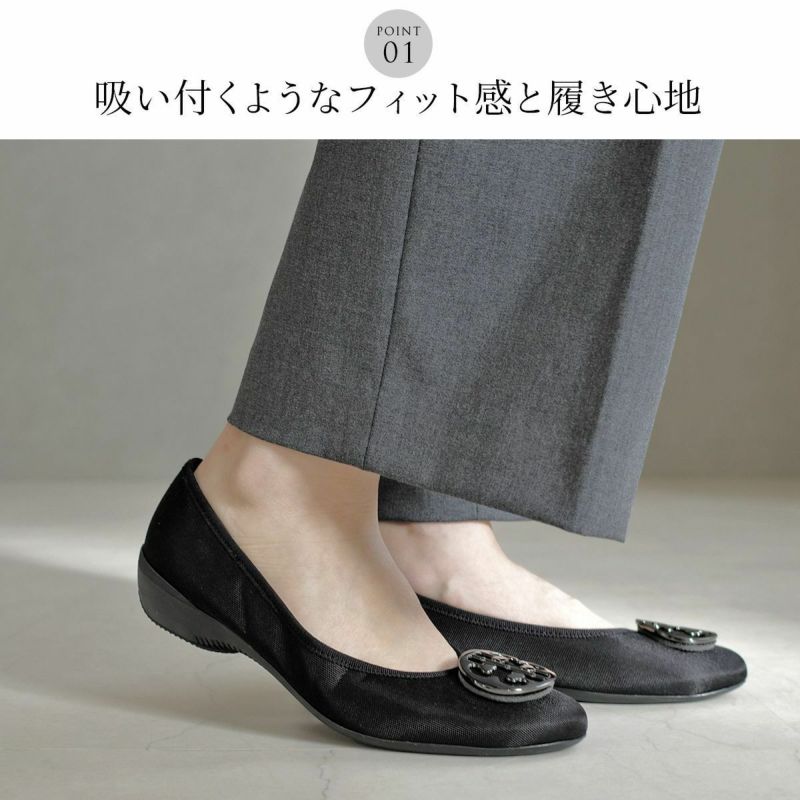 幅広の方も安心の3E仕様で、吸い付くようなフィット感のある履き心地が魅力。包み込まれるようなふかふかの足当りと、歩きやすいヒール高はさりげなくスタイルアップもかないます。