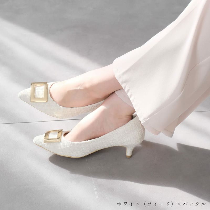 バックルモチーフポインテッドトゥパンプス レディース