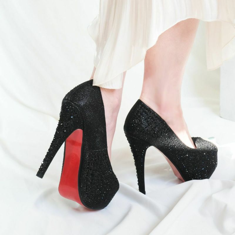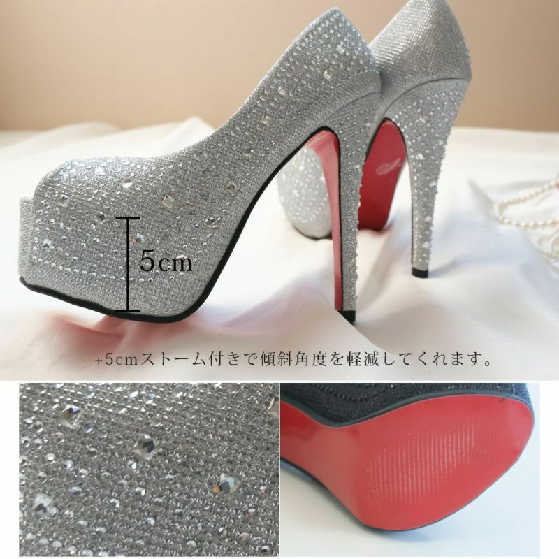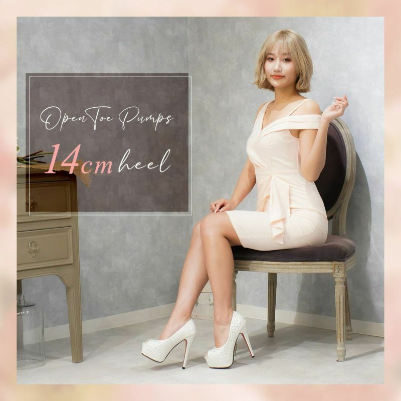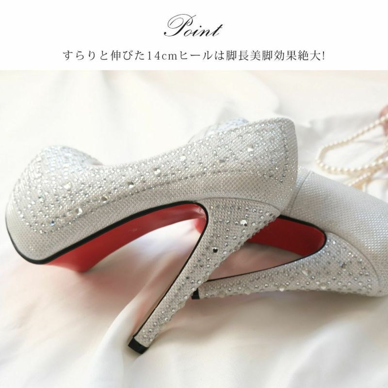 ヒール部分まで豪華に輝くラインストーン付きすらりと伸びた14cmヒールは脚長美脚効果絶大!