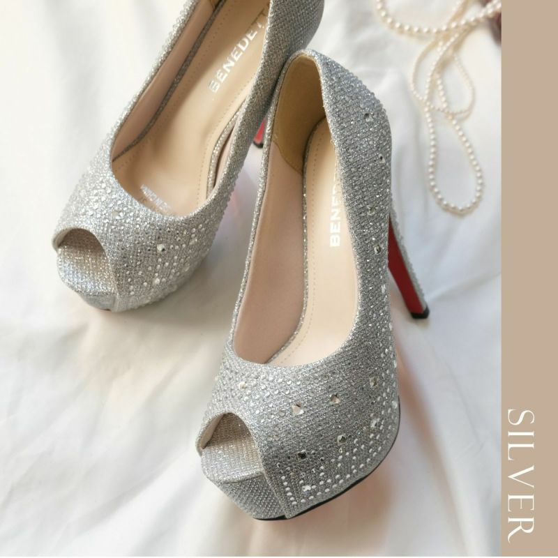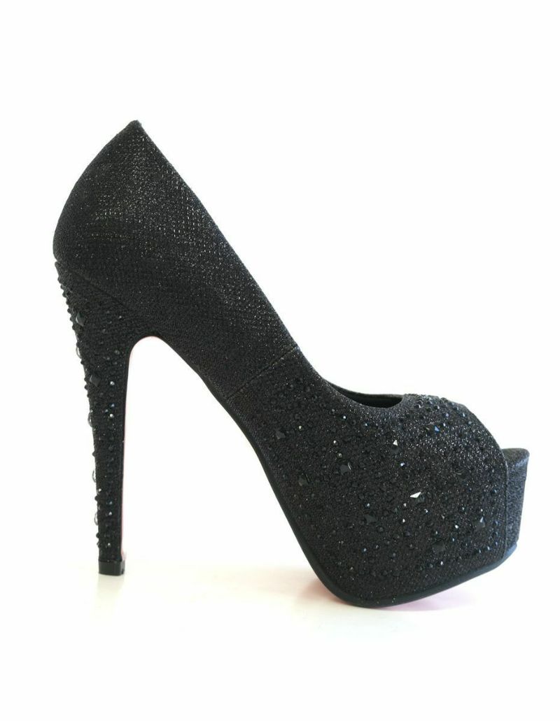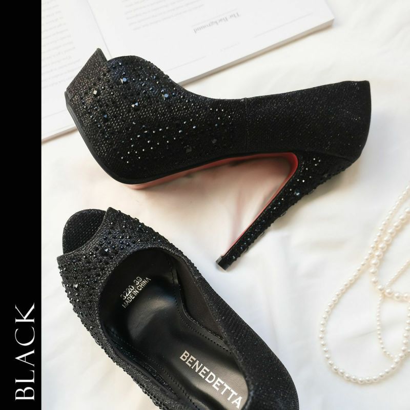 豪華ラインストーンが散りばめられたオープントゥパンプス