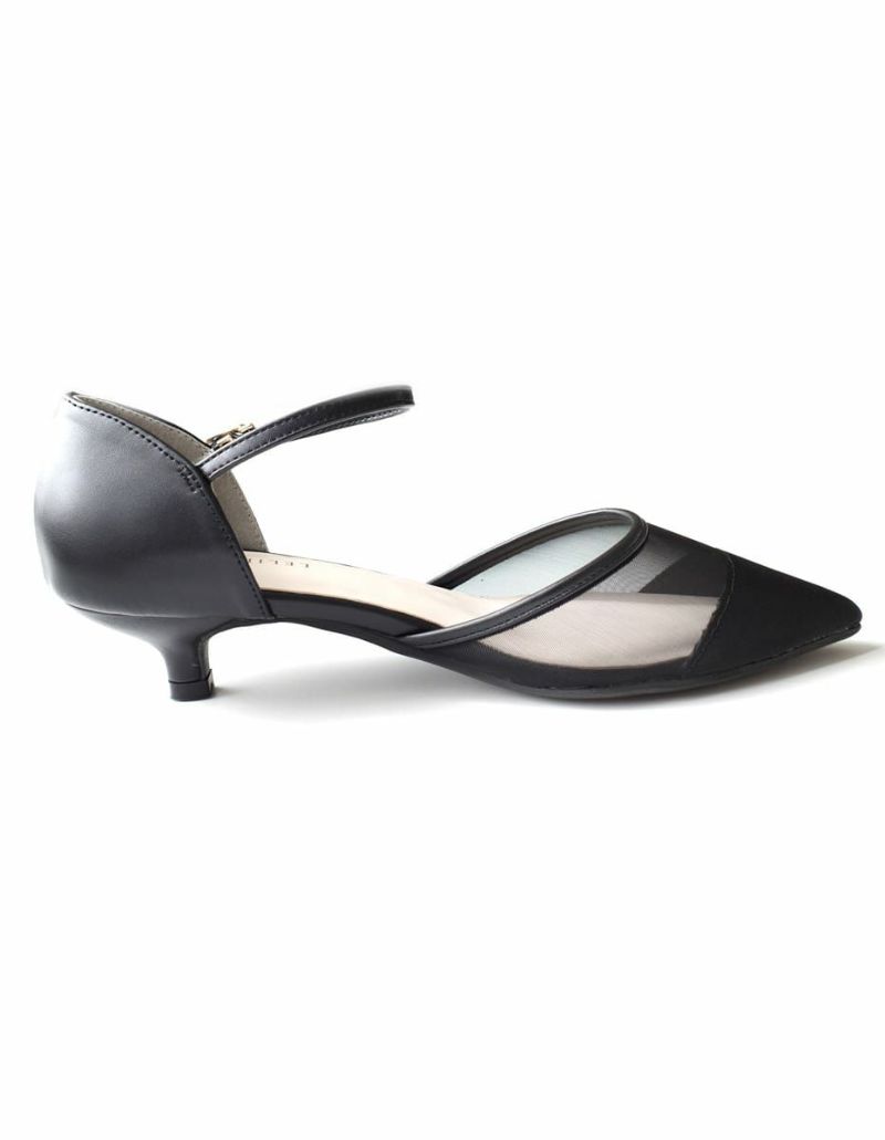 キトゥンヒールオケージョンセパレートチュールパンプス レディース