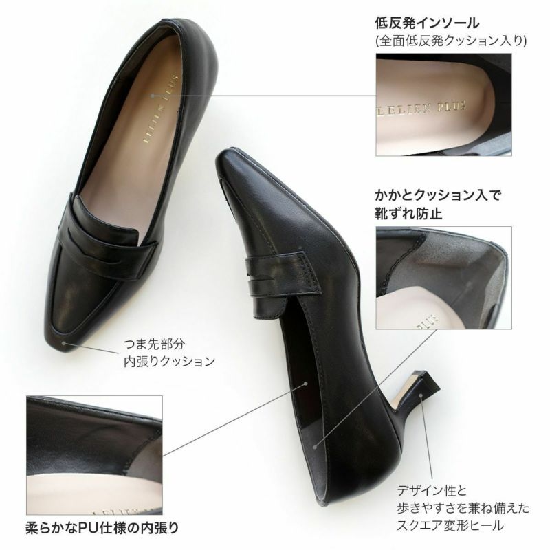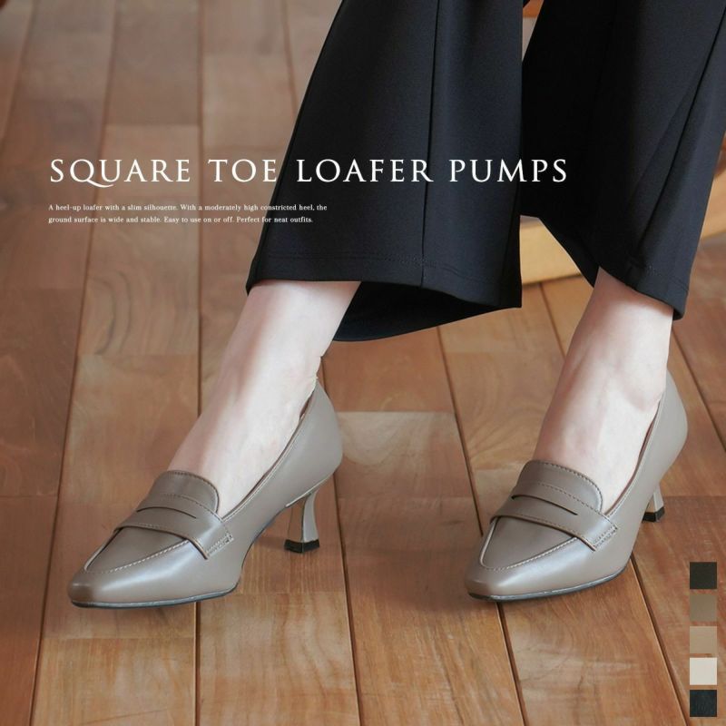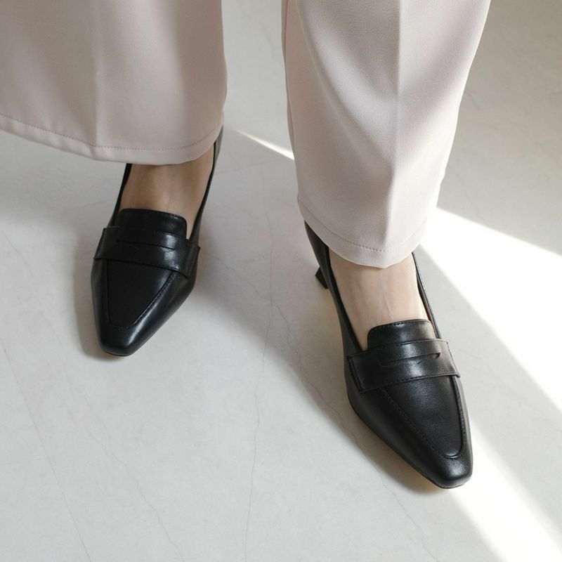 ONにもOFFにも使えるヒールアップローファー程よい高さのくびれヒールがアクセント。接地面が広く安定感があります。