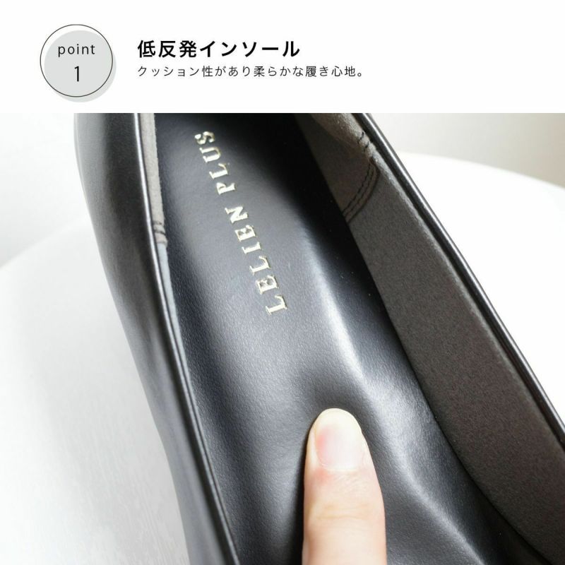 安定感がありオフィスにもぴったりなパンプス。低反発インソール&かかとクッションで快適な履き心地。