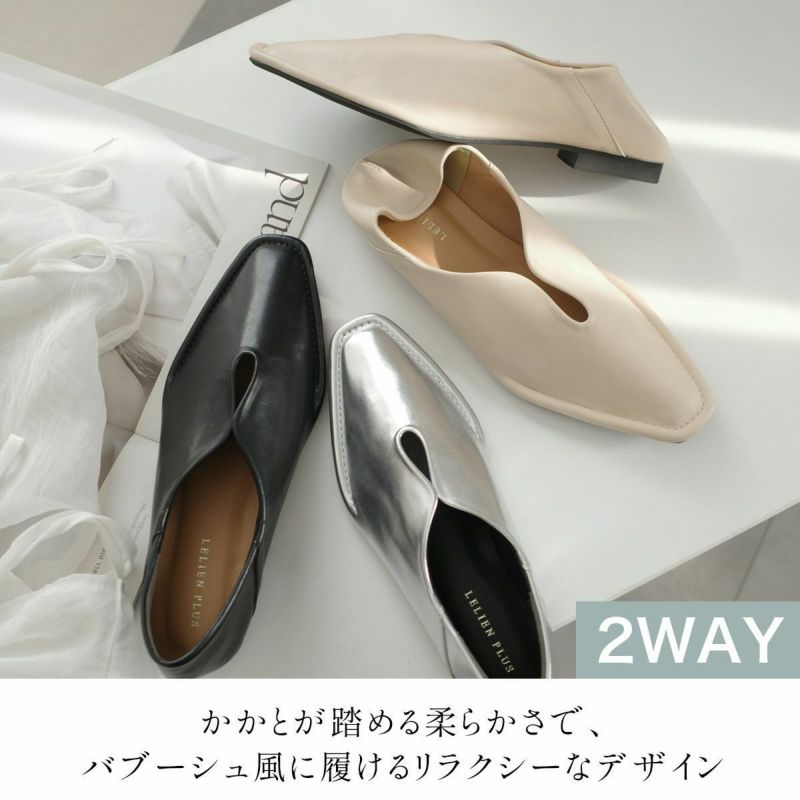 2WAYスリットパンプスフラットアウトステッチバブーシュ レディース