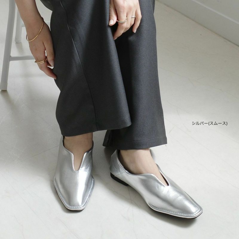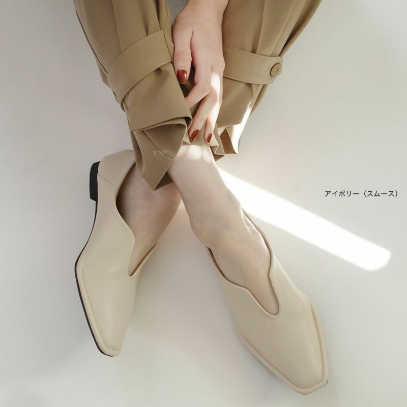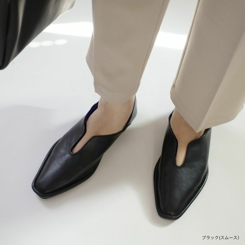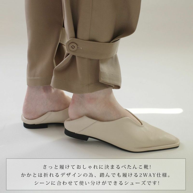 かかとが踏める柔らかさで、バブーシュ風に履けるリラクシーなデザイン!シンプルながらも存在感のあり大人カジュアルな印象に。