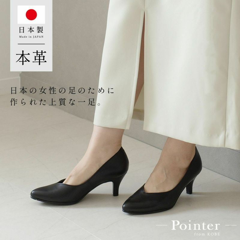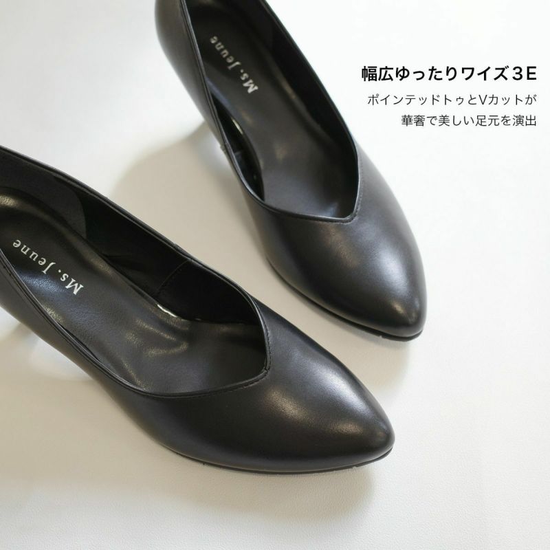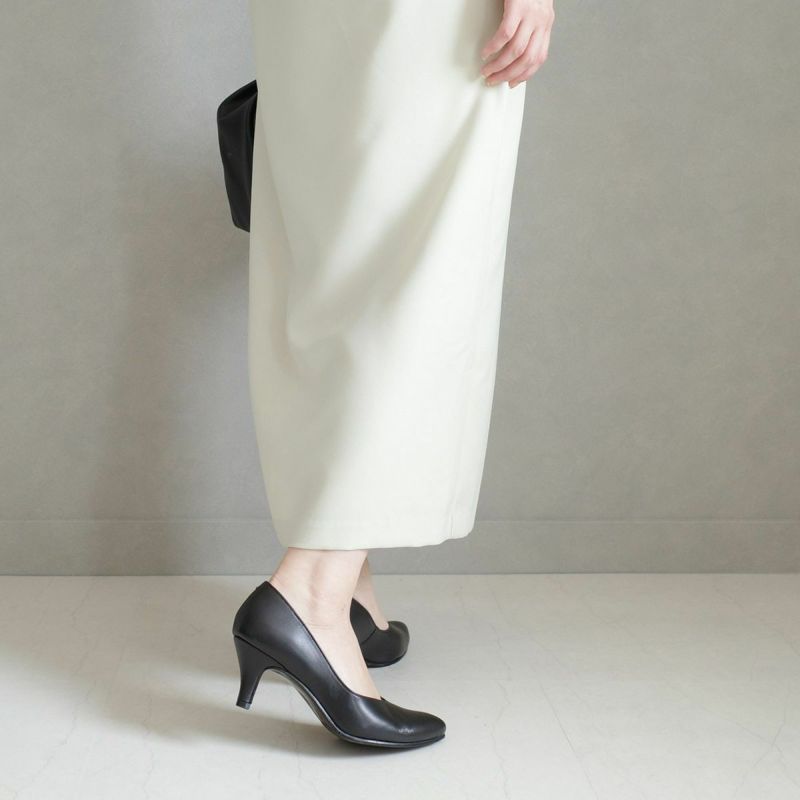 すらりとした6cmヒールとVカットが、華奢で美しい足元を演出。抗菌消臭効果で毎日履いても快適。