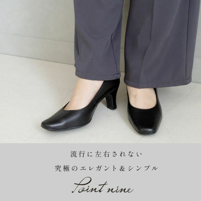 落ち着いた印象のスクエアトゥはお仕事からお出かけまで幅広く活躍中敷はアーチクッション入りで抗菌消臭効果あり。
