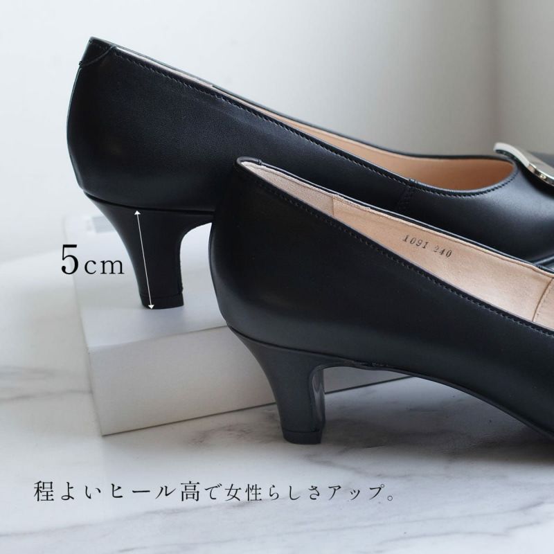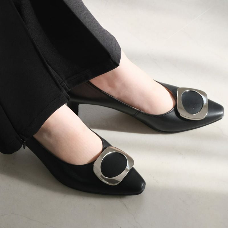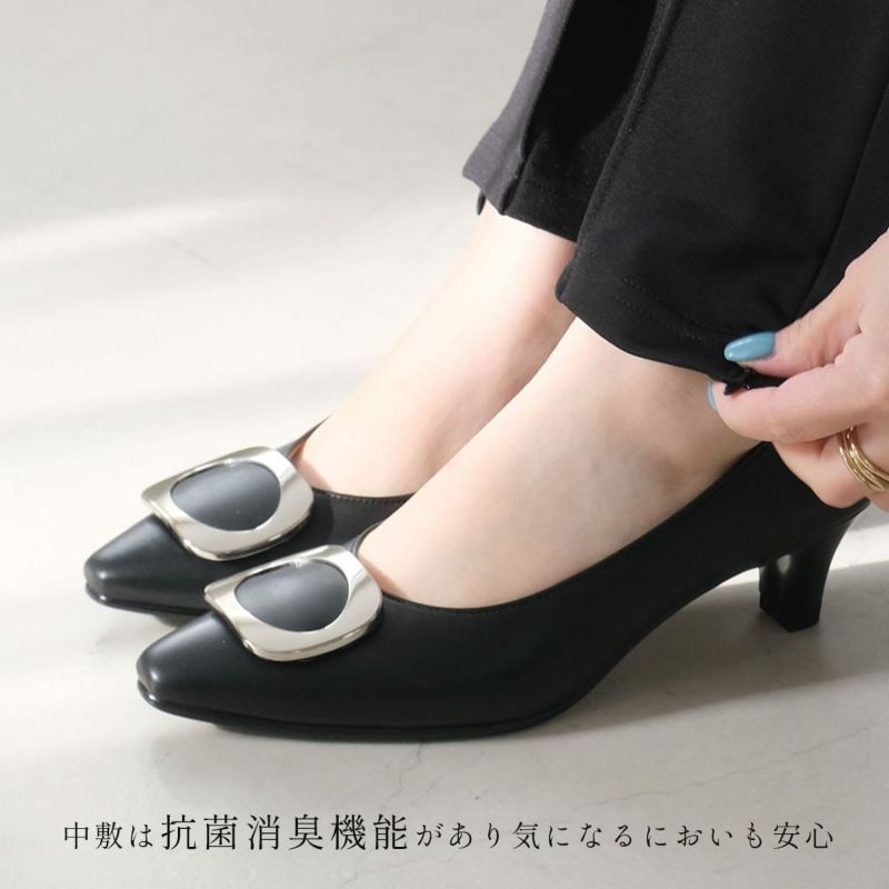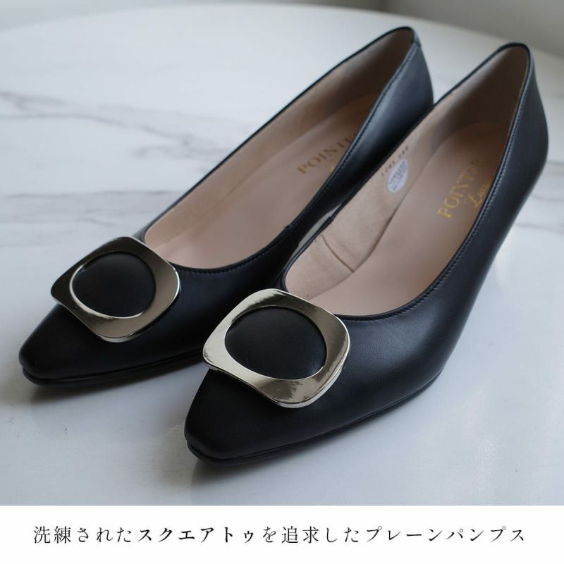 牛革の中でも〝キップ〟と呼ばれる高級素材を使用洗練されたスクエアトゥを追求したプレーンパンプス