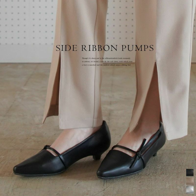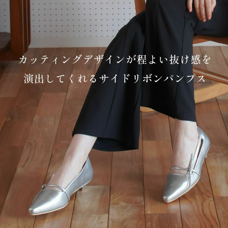 カッティングデザインが程よい抜け感を演出!サイドリボンパンプス