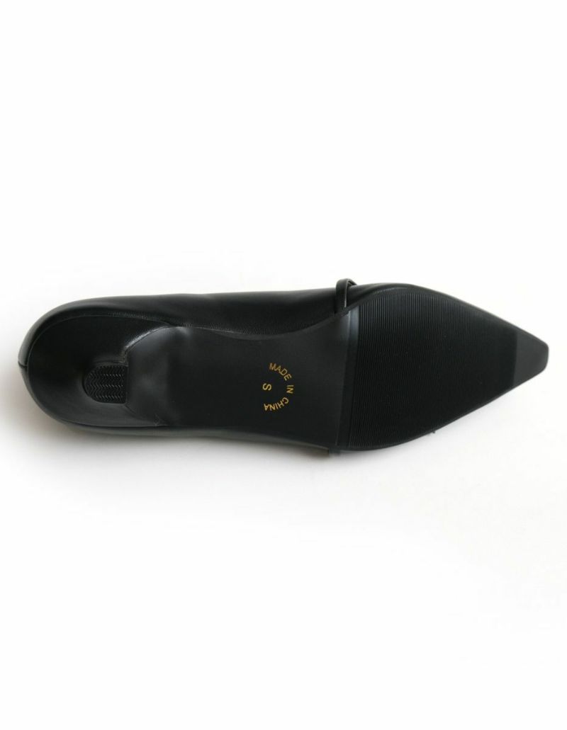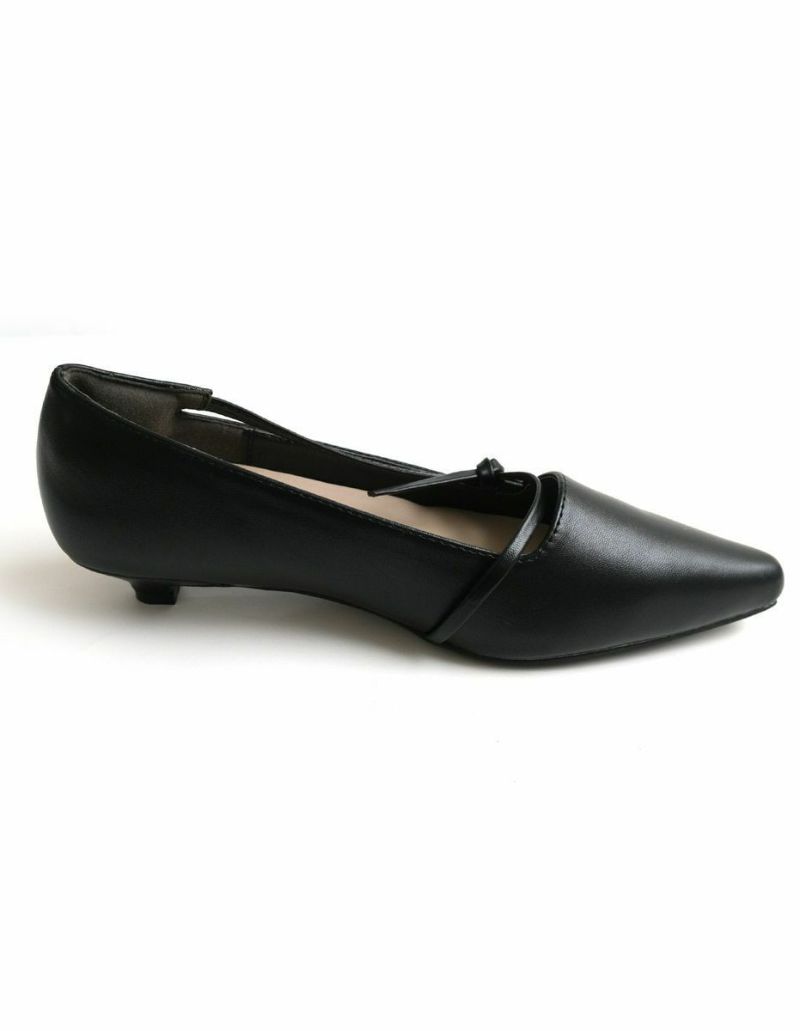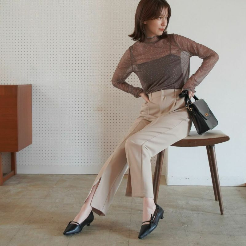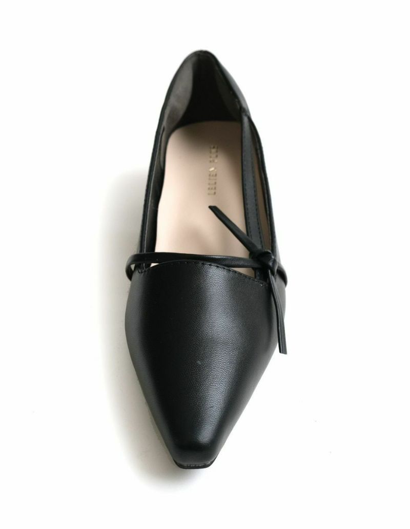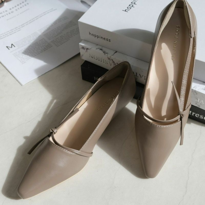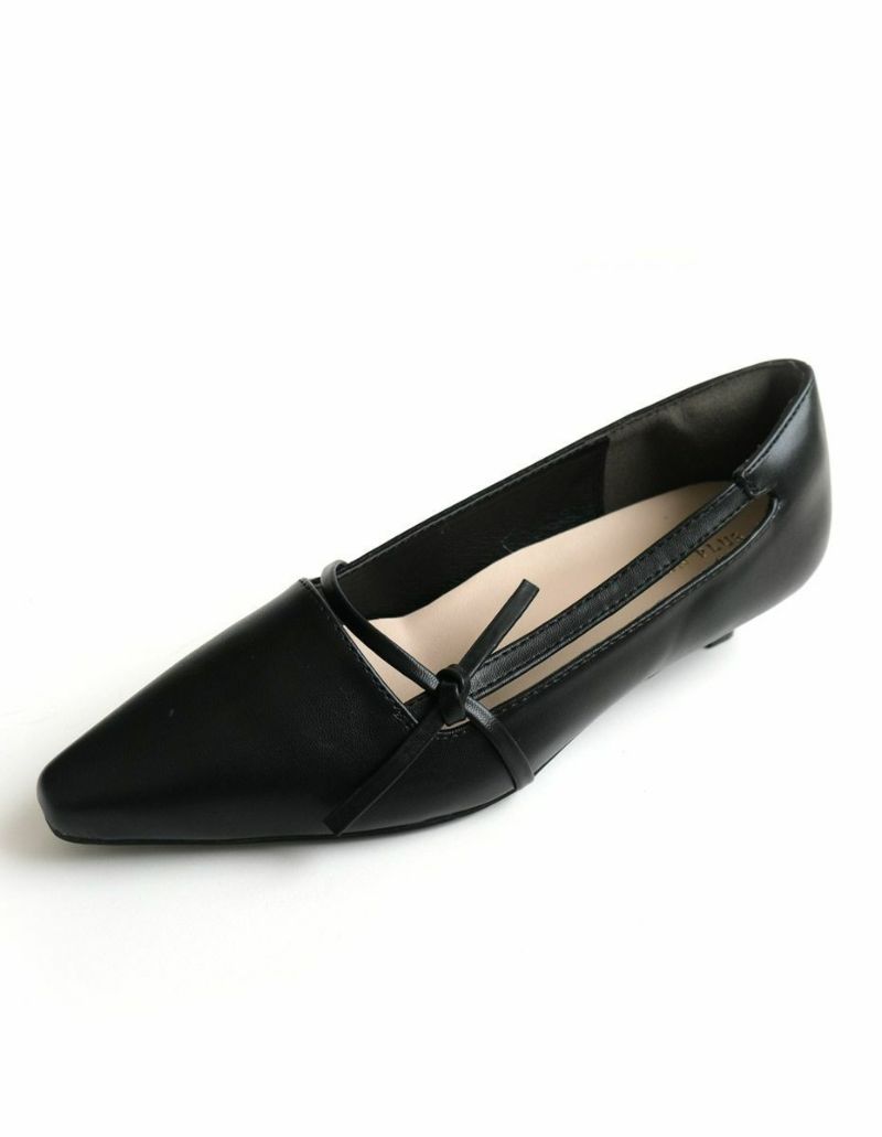 低めのヒールで歩きやすく疲れにくい。一見シンプルな見た目ながらも、さりげないサイドのリボンがポイントに。