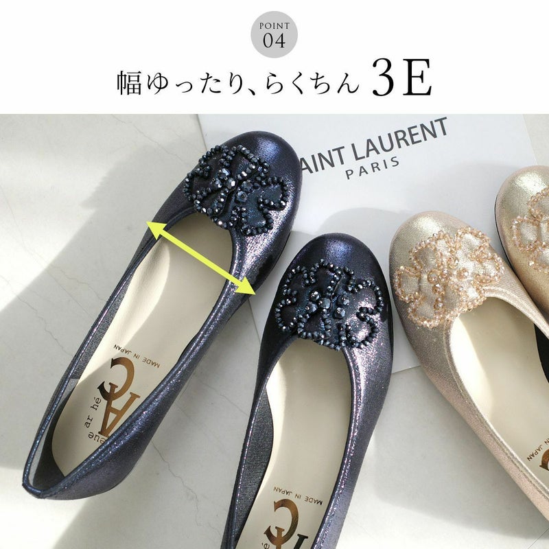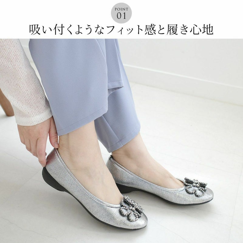 幅広の方も安心の3E仕様で、吸い付くようなフィット感のある履き心地が魅力。包み込まれるようなふかふかの足当りと、歩きやすいヒール高はさりげなくスタイルアップもかないます。