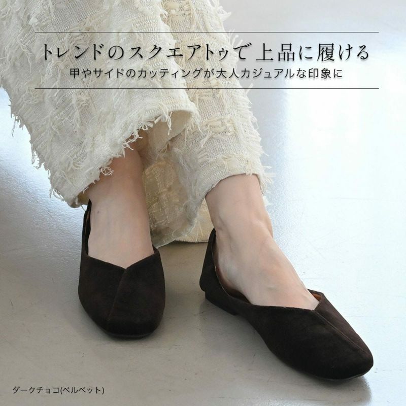 トレンドのスクエアトゥで上品に履けるフラットタイプさっと履けておしゃれに決まるぺたんこ靴!