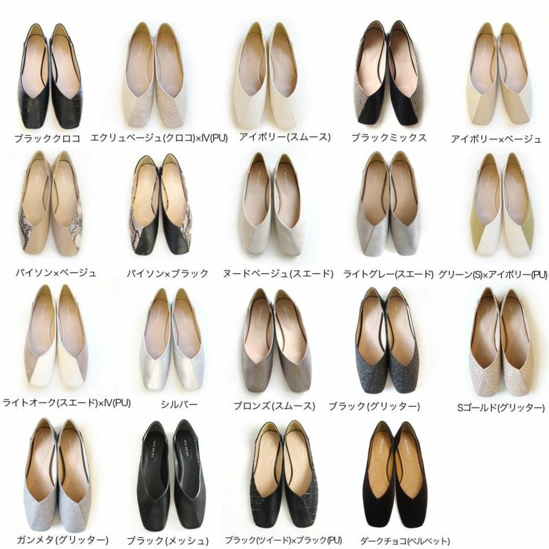 • ブラッククロコ、エクリュベージュ(クロコ)×IV(PU)、ブラックミックス、パイソン×ベージュ、パイソン×ブラック、ヌードベージュ(スエード)、ライトグレー(スエード)、ブラック(ツイード)×ブラック(PU)の柄は左右対称ではございません。